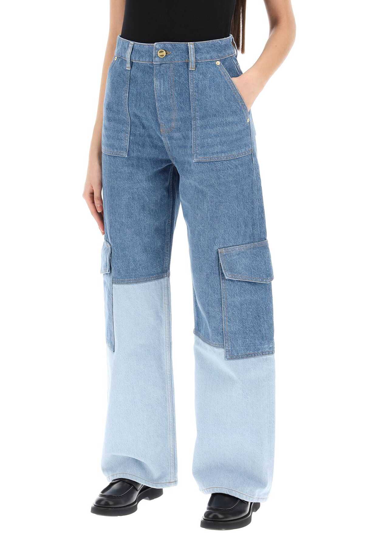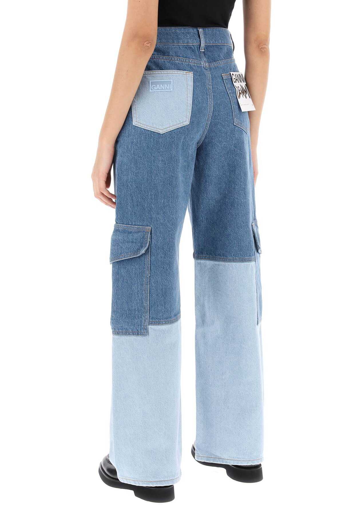 GANNI's Angi Jeans are made from two-tone organic cotton denim, featuring cargo pockets and a hidden zip and button closure. With a high waist and loose fit with straight leg, these jeans offer both style and comfort. The model is 177 cm tall and wears size 26.