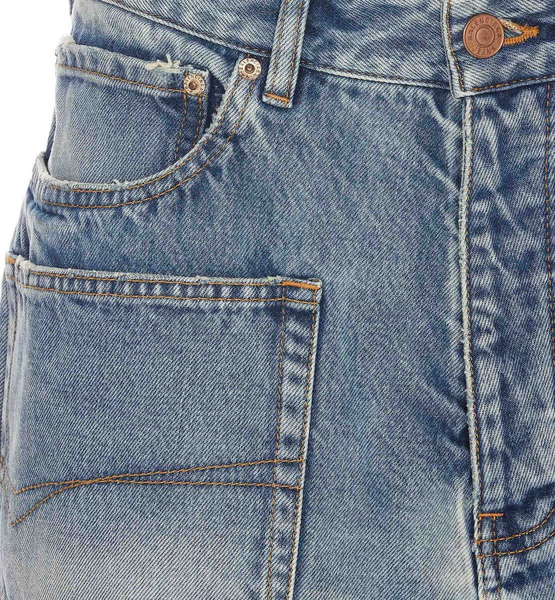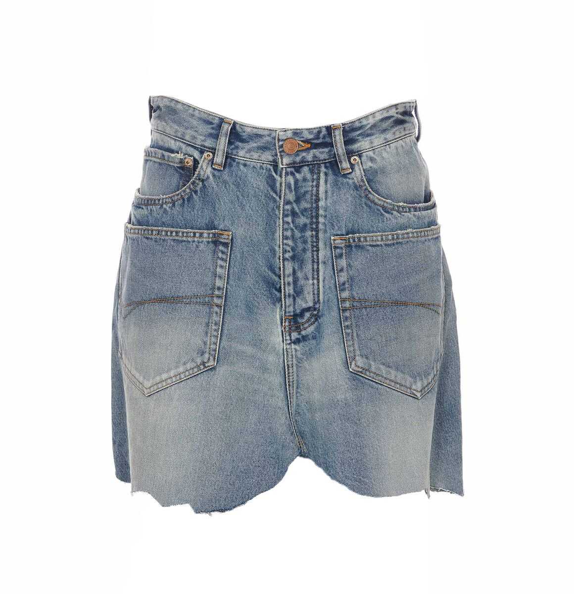 Cut-Up denim asymmetric miniskirt from BALENCIAGA featuring light blue, cotton, A-line, logo patch to the rear, low-rise, belt loops, front button and zip fastening, classic five pockets, asymmetric hem and thigh-length. We've partnered with Good On You — an independent agency that rates how brands perform in relation to their impact on the planet, people and animals, with a multi-criteria rating simplified to a five points scale. In order to be awarded our conscious label, larger brands need to score a minimum of four out of five ('Good'), while smaller brands must score at least three out of five ('It's a start'). This item comes from a brand rated four out of five ('Good') by Good on You. Please note, this is a brand-level rating and does not guarantee that this product is made with conscious materials.. Learn more about what makes a product Conscious on our Conscious Criteria page.