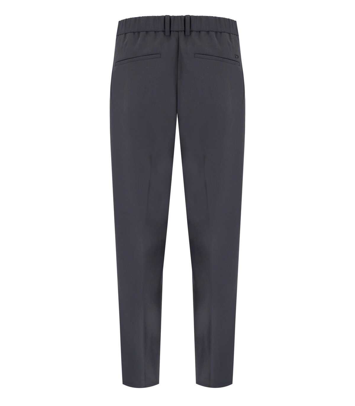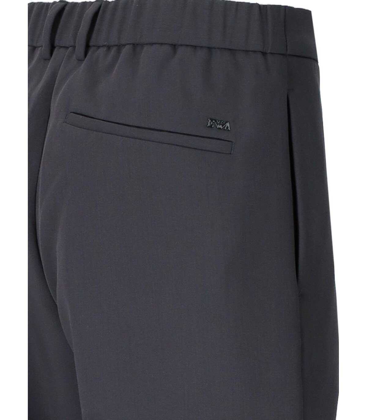 Trousers by Emporio Armani made of mixed viscose fabric in blue. Characterized by a zip closure and hook, it features side welt pockets. Waist equipped with belt loops. At the back, it has two fake pockets. It has the Saffiano Emporio Armani logo on the back, above the right pocket. High waist and soft leg.