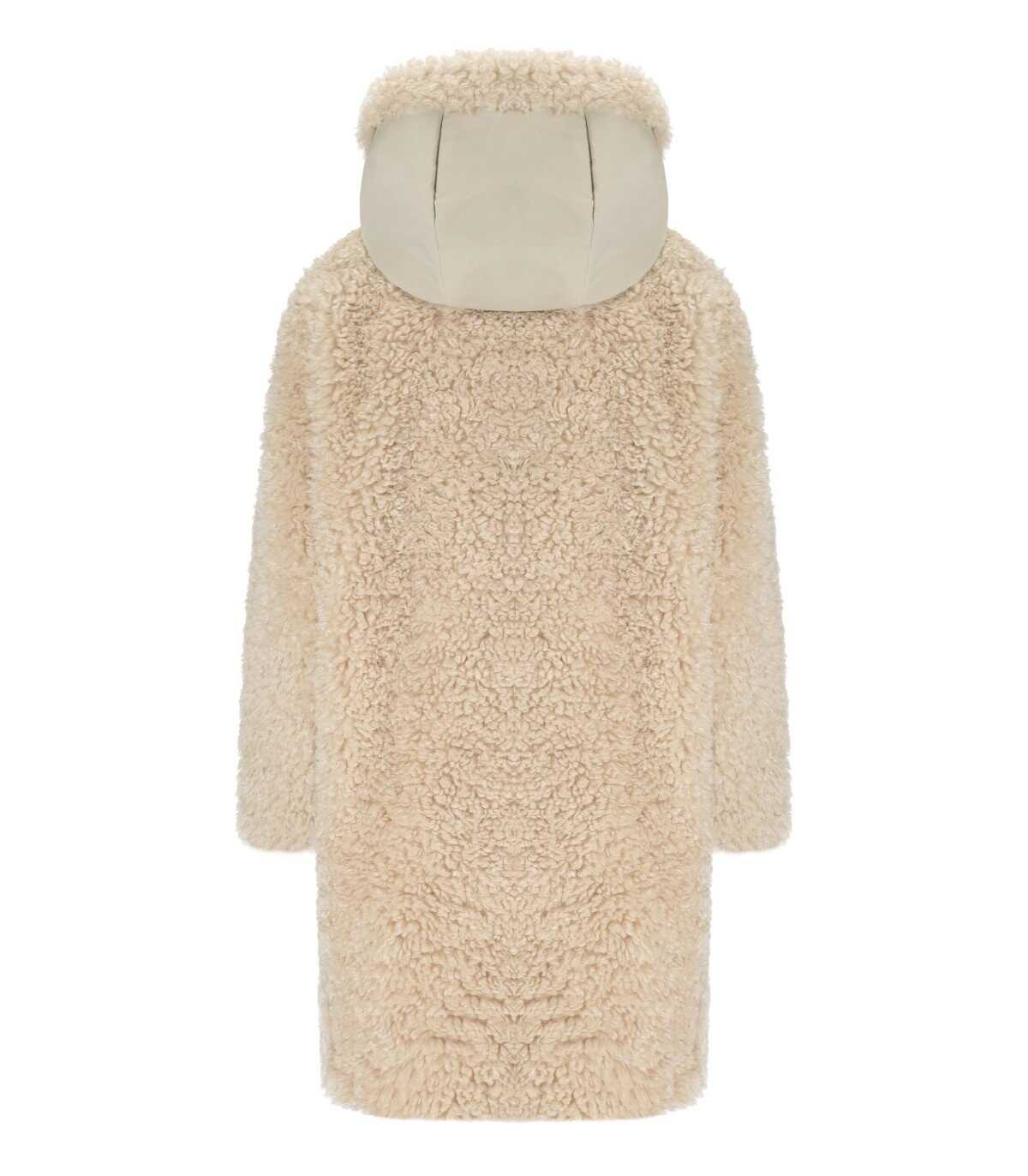 Angelica padded jacket by Save The Duck made of soft synthetic fur in a beige color. Characterized by a double-slider zip closure, it features a customized pull tab. Equipped with a hood finished with smooth fabric details. At the front, it has two pockets that provide a contrasting note. Long raglan sleeves, with a round logo on the right sleeve. Regular fit.