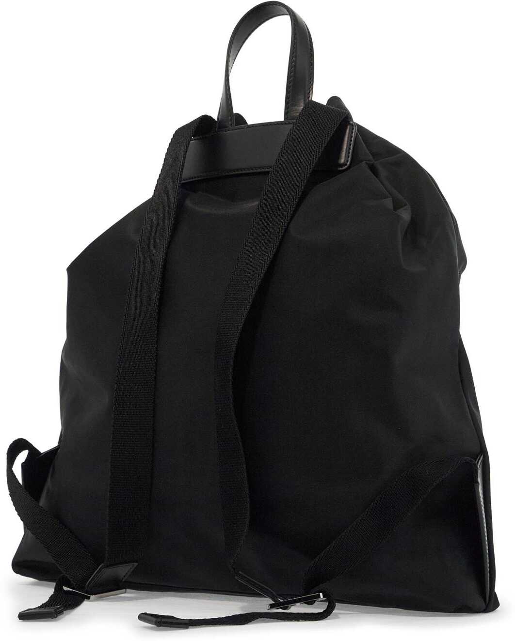 This Dolce & Gabbana backpack is made of nylon with a contrasting rubberized logo lettering applied on the front. It features a drawstring closure, a lined interior with a zip pocket, and adjustable shoulder straps in ribbon. Details in leather and metal hardware with a ruthenium finish complete the design.