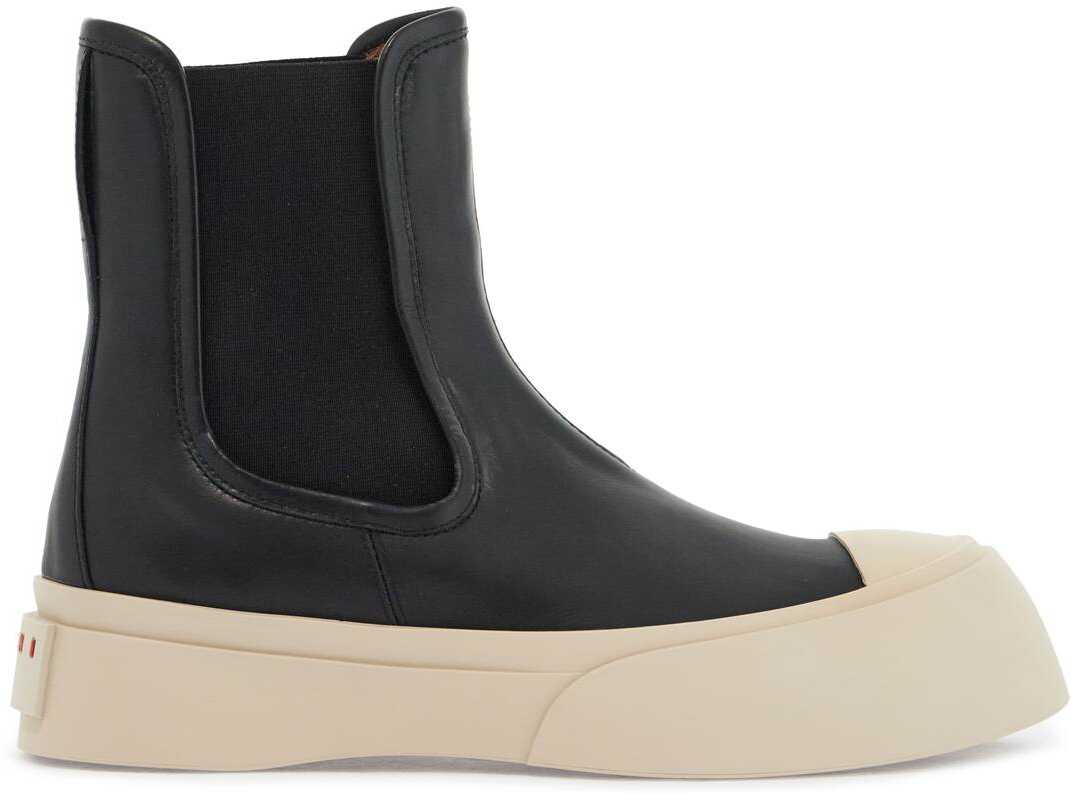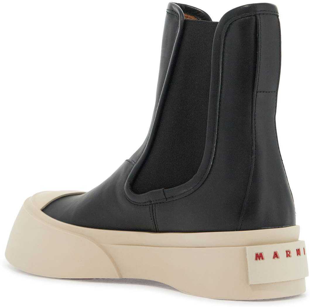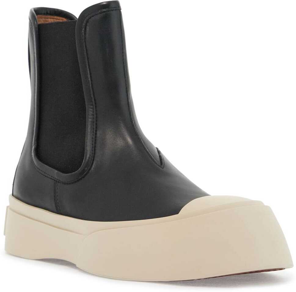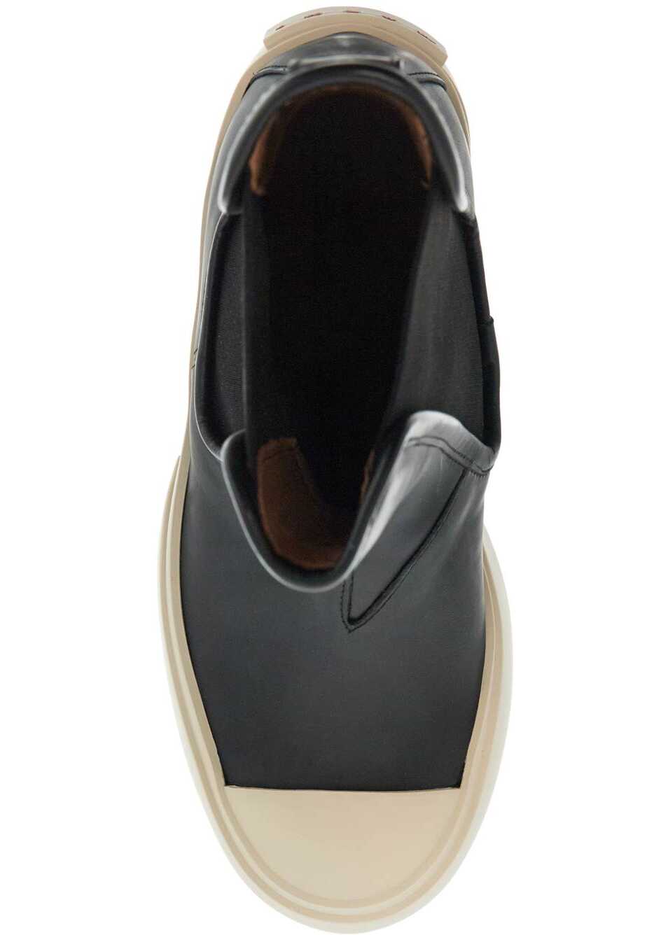 Pablo chelsea ankle boots by Marni made of leather with elastic side insets and leather back pull. Unlined interior with leather insole, rubber oversized toe and sole.