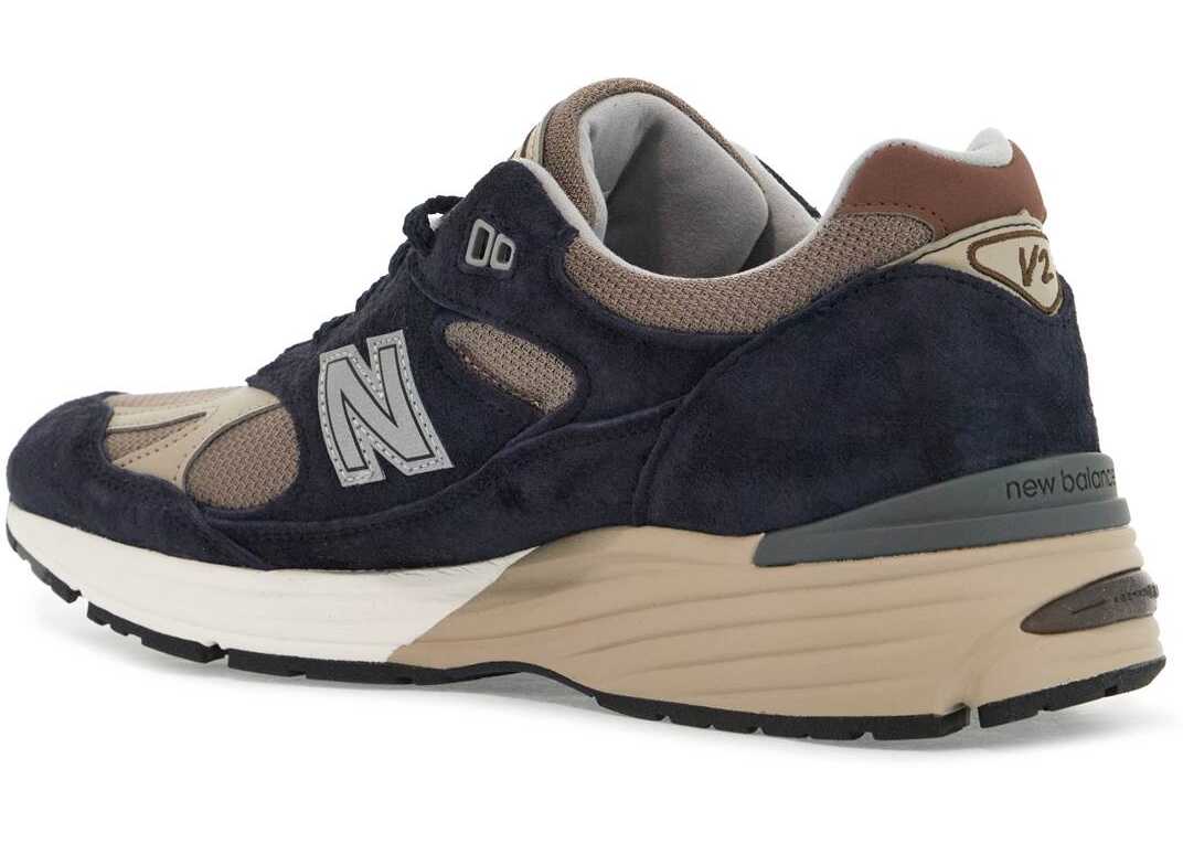 The New Balance 991 Made in UK sneakers feature a mesh and suede leather upper, with smooth leather inserts in contrasting colors. The iconic monogram 'N' patch is applied on the sides, along with reflective details. Embroidered 991 and V2 logos can be found on the back, while a leather logo patch adorns the tongue. The interior is lined with fabric and has a removable insole, while the midsole boasts ABZORB technology for superior cushioning. The rubber