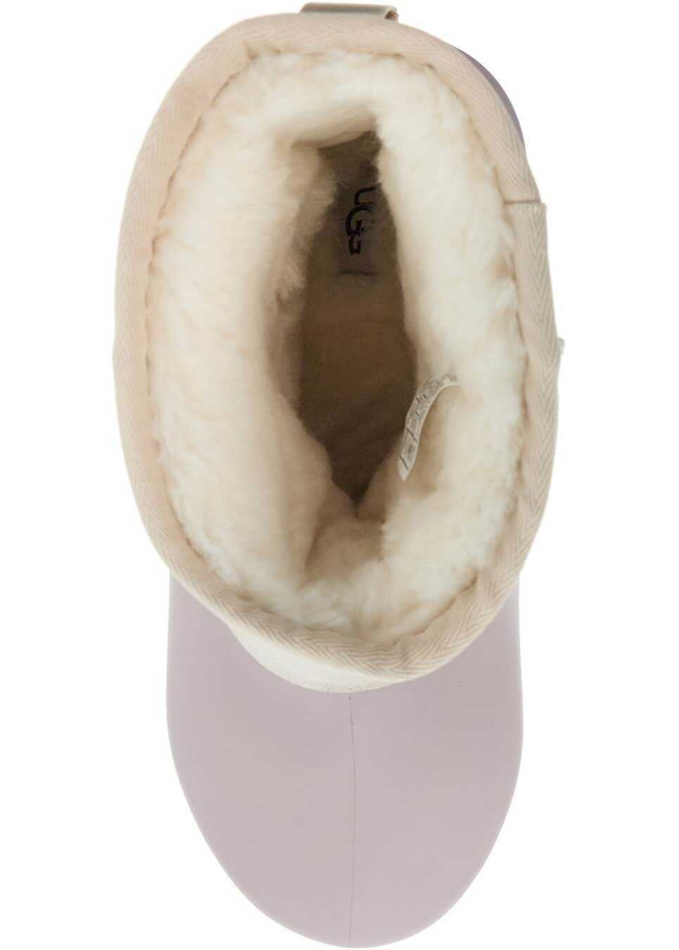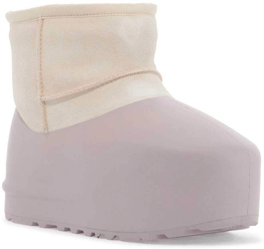 The Classic Mini Pumped Molded ankle boots by UGG are made of suede leather with a contrasting PU-covered base and toe. The design features a hidden platform and is complete with a back strap in ribbon, UGGplush&trade lining, and rubber sole.