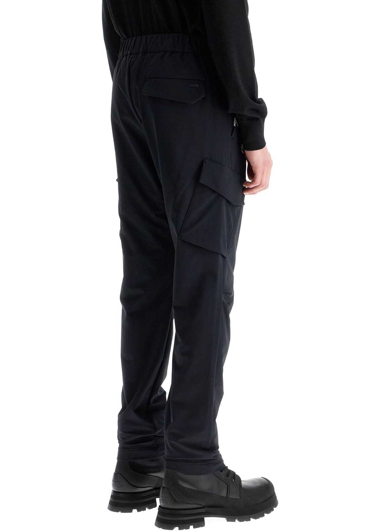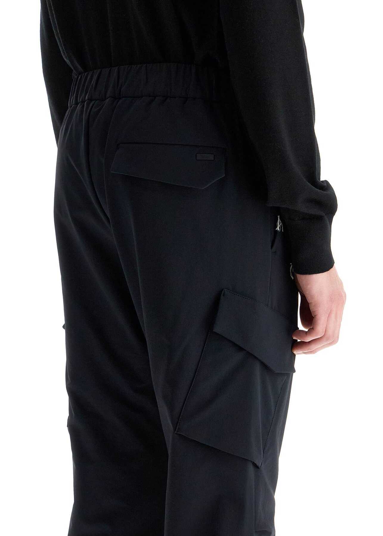 These cargo pants from the Laminar collection by Herno are made of comfortable stretch technical fabric. They feature a soft fit at the hips with front pleats and an elasticated waistband with drawstring. The leg has a slimmer cut with small ergonomic folds at the knees. The garment is equipped with three side pockets, one back pocket, and two cargo pockets. Front closure with zip and button. The model is 182 cm tall and wears size M.