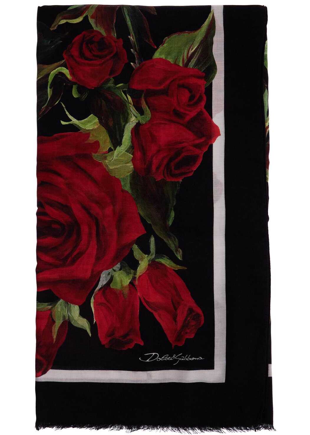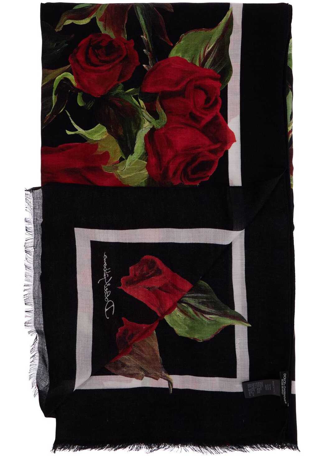 This Dolce & Gabbana scarf is made of a silk blend with a Rose print, finished hem and small fringe on the ends.
