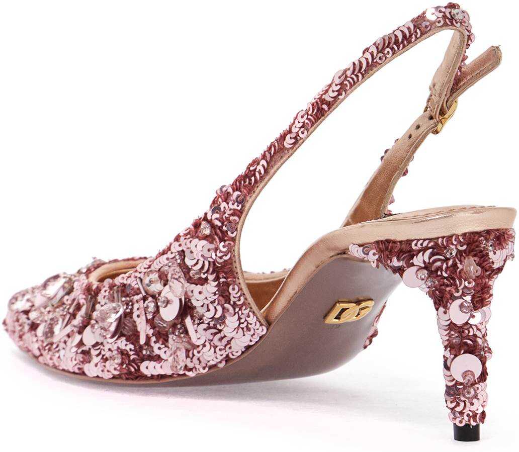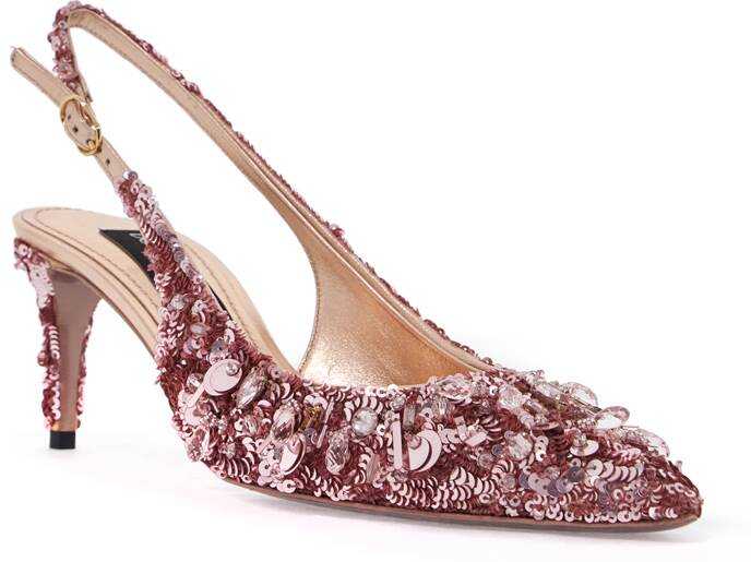 These Dolce & Gabbana slingback pumps are adorned with all-over sequins of various sizes. They feature an adjustable strap, a laminated leather insole, a covered kitten heel, and a leather sole.