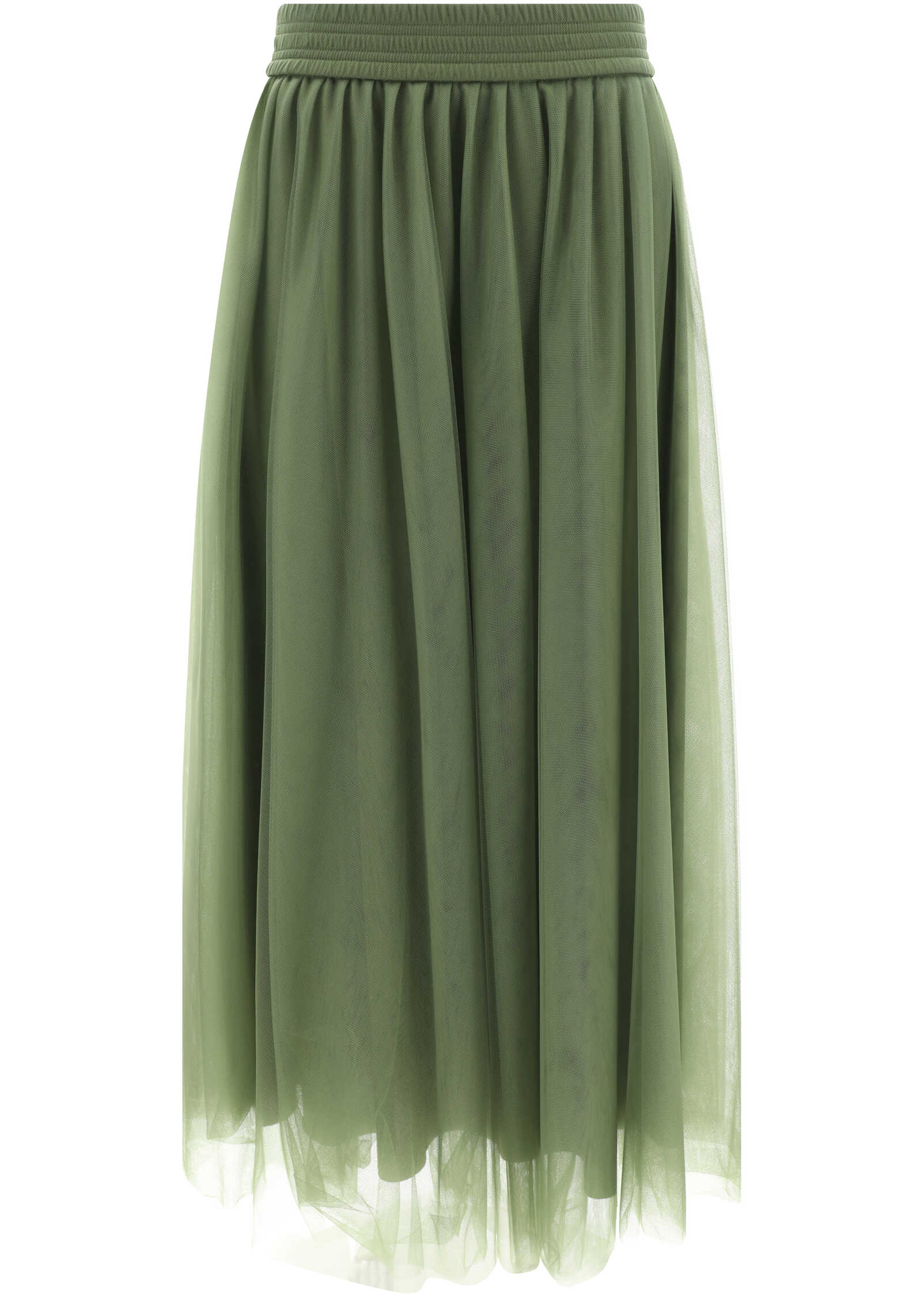 Long Skirt by Fabiana Filippi, elasticized waistband, double layer design, tone-on-tone semi-transparent tulle outer layer, monochrome pattern, regular fit.