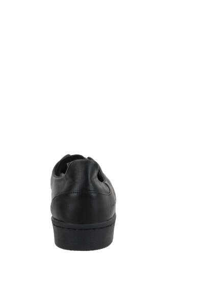 Y-3's low-top sneakers crafted in black smooth leather with 3-stripes detail on side and tone-on-tone shell toe cap. Featuring lace-up closure, a round-toe silhouette, leather / fabri lining and rubber sole. The design is completed by the iconic Y-3 logo embossed on tongue and Yohji Yamamoto signature on external side. The sneakers come with an additional set of shoelaces.