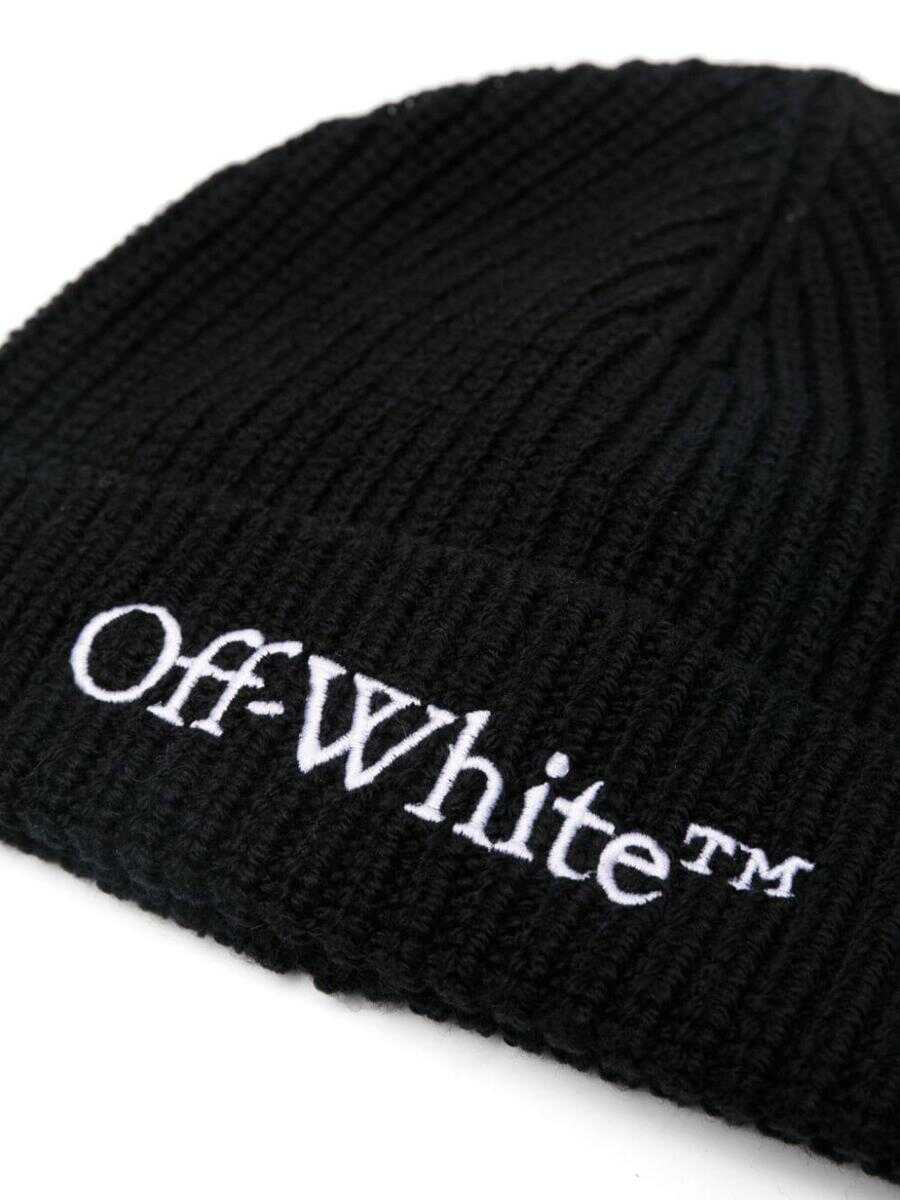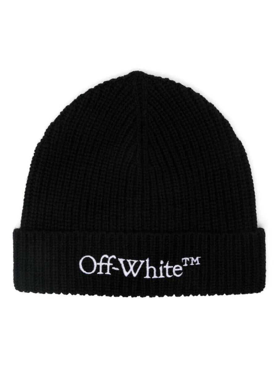 black wool ribbed knit round crown turn-up brim embroidered logo to the front