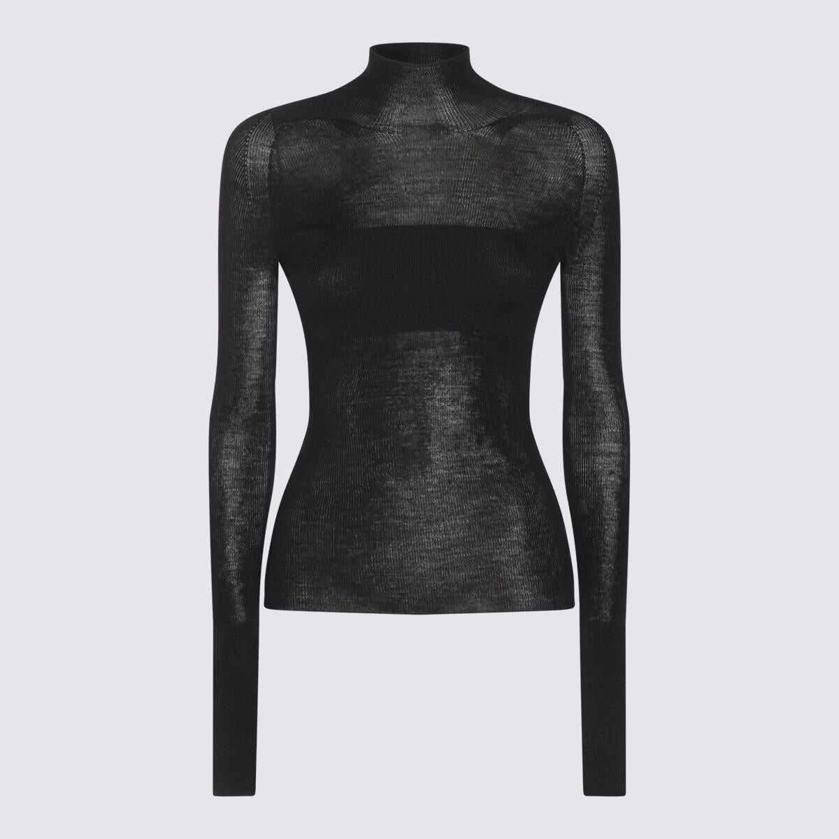 Black wool knitwear from Versace featuring long sleeves, high collar, trasparence and elasticizated vestibility.