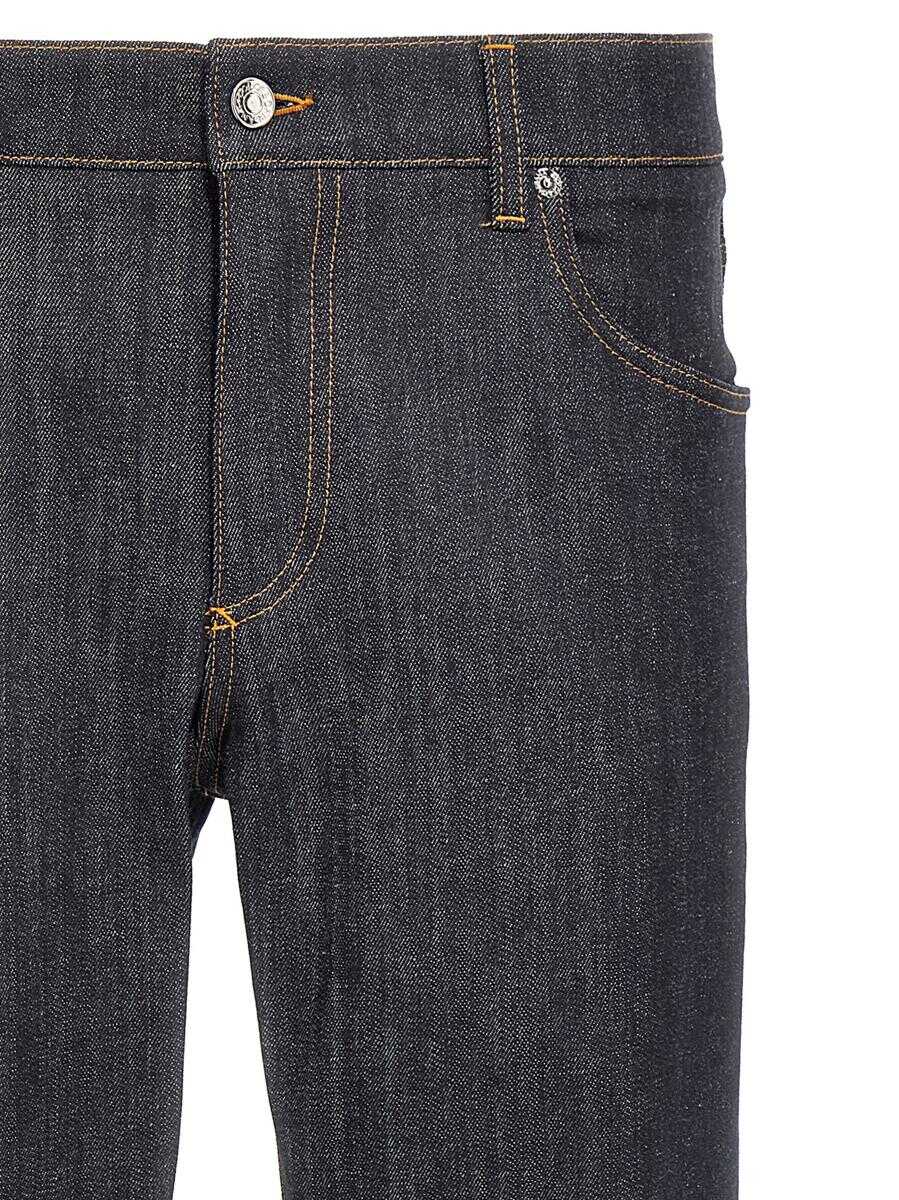 Cotton denim jeans with zip and button closure, five pockets, rubberized logo at the back