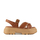 brown nappa leather contrast stitching round open toe crossover strap at the toe buckle-strap fastening branded leather insole rubber lug sole