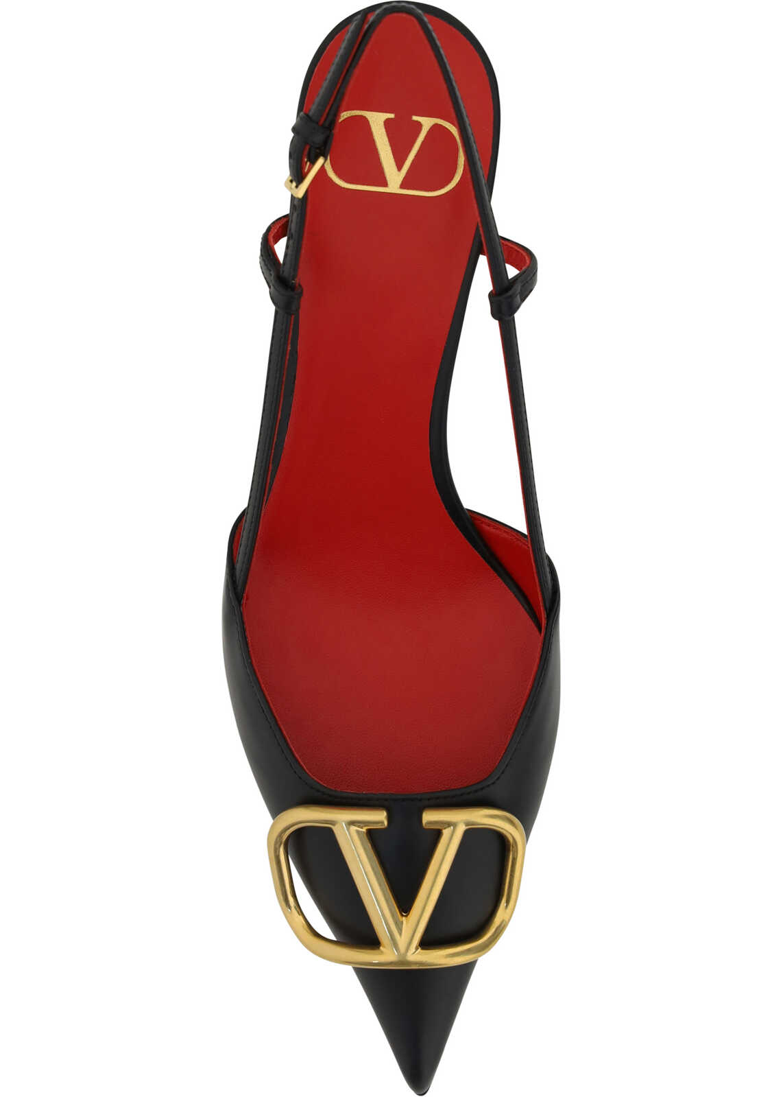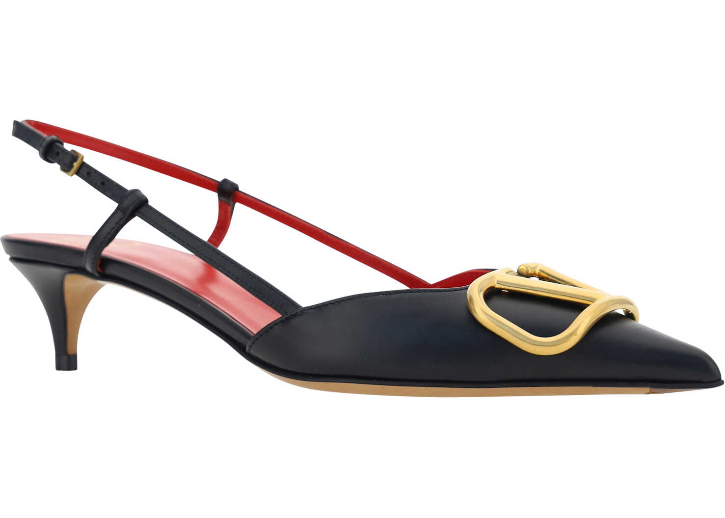 Leather VLogo Slingback Pumps by Valentino Garavani, three-dimensional plaque with iconic Vlogo logo applique, leather kitten heel, adjustable slingback by strap.