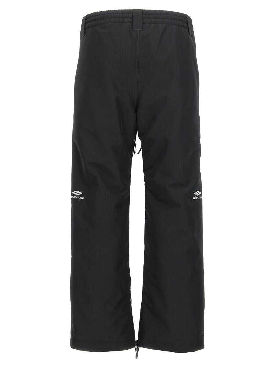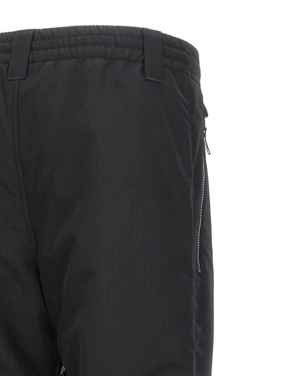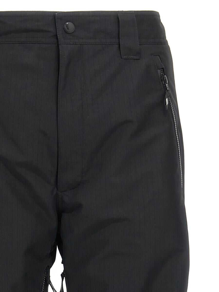 Water-repellent technical fabric ski pants, logo embroidery, elastic drawstring waistband, zipper and button closure, pockets, inside leg zipper, gaiters on bottom leg and zipper detail