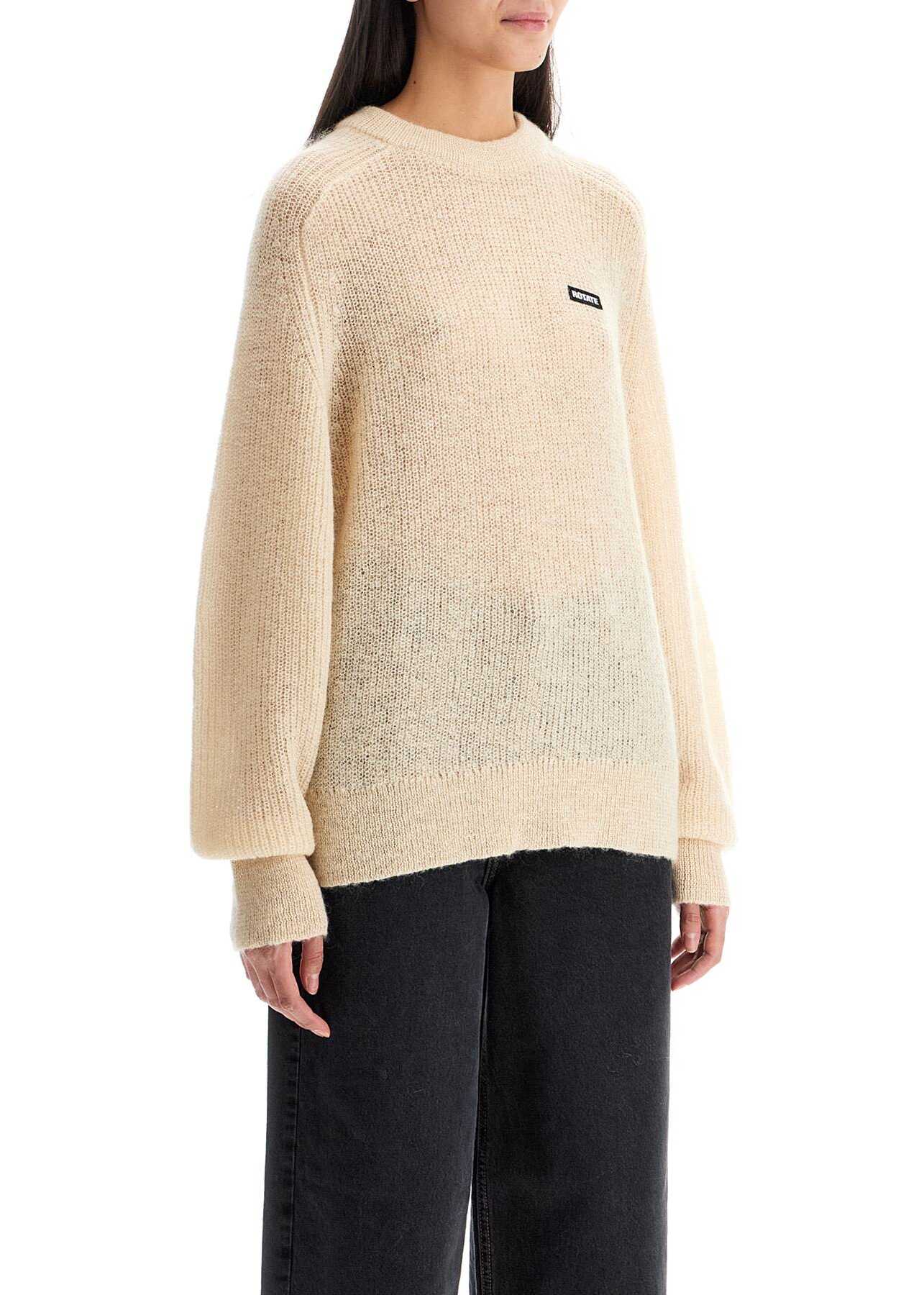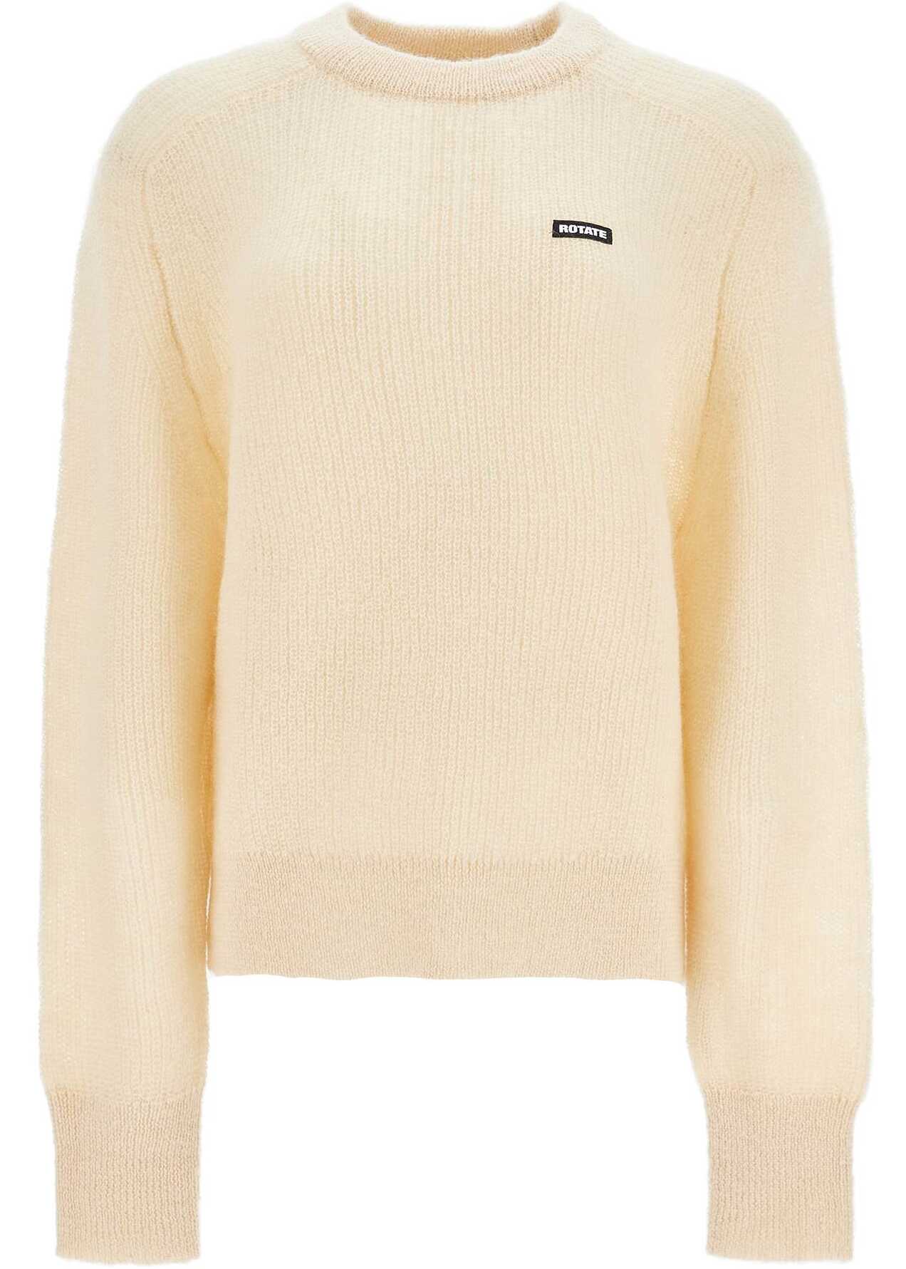 This soft ribbed pullover is made of a blend of mohair, featuring an oversized fit with bell sleeves and a logo label sewn on the chest. The model is 177 cm tall and wears size EU 34.