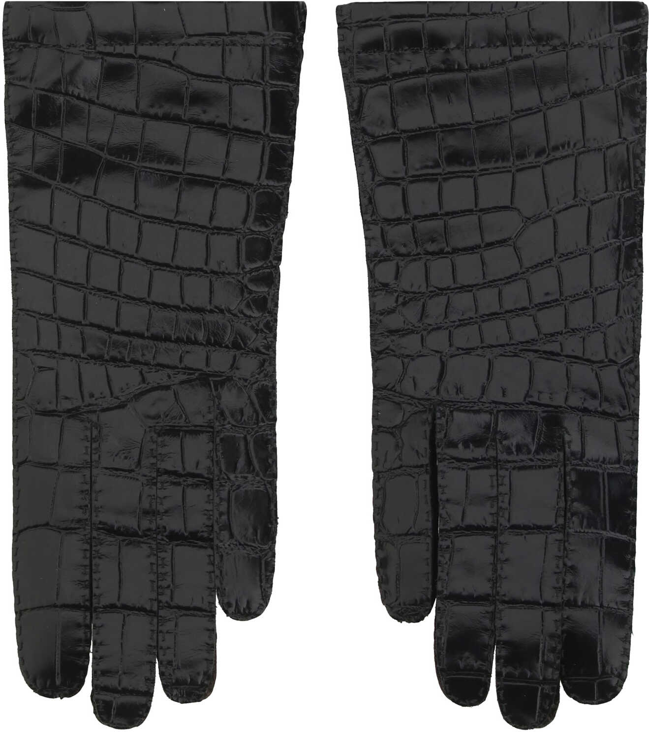 Leather Gloves by Miu Miu, croc-effect design, iconic brand monogram patch applied at back, cashmere lining.