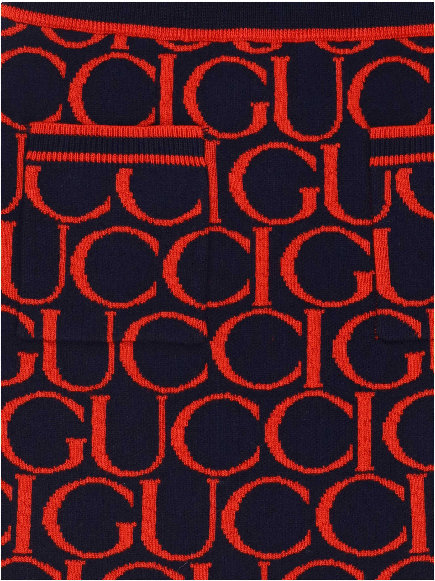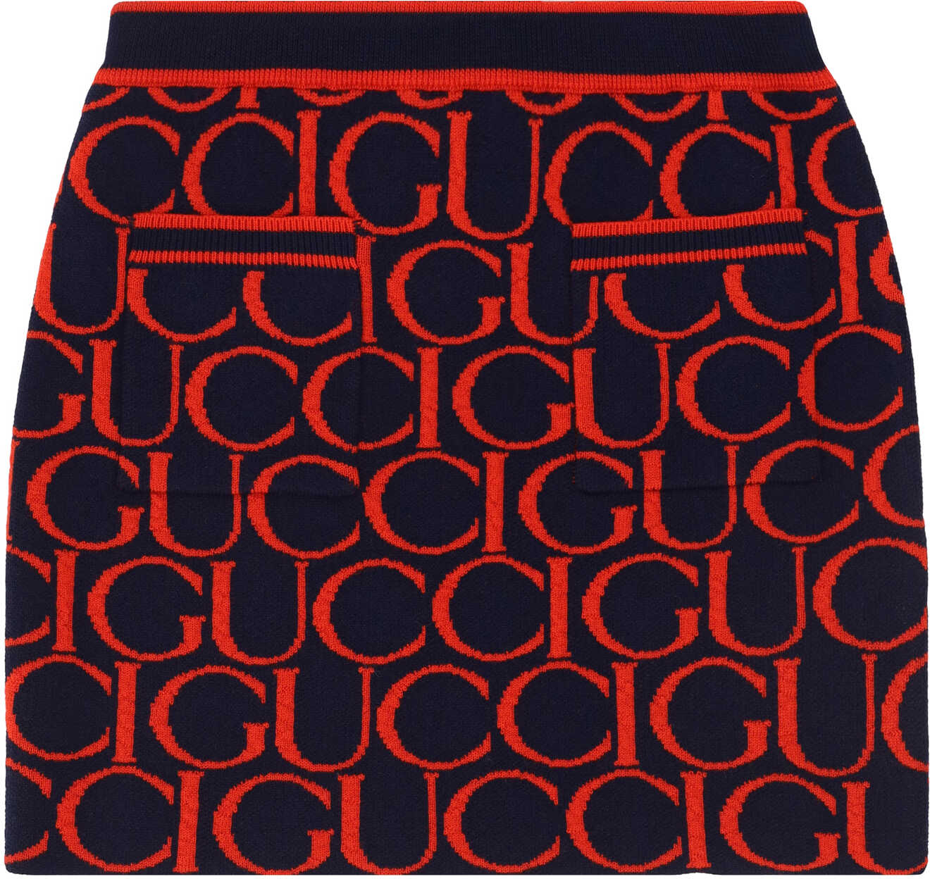 Wool Skirt for Girl by Gucci, jacquard weave iconic all-over repeated brand monogram, elasticized waistband.