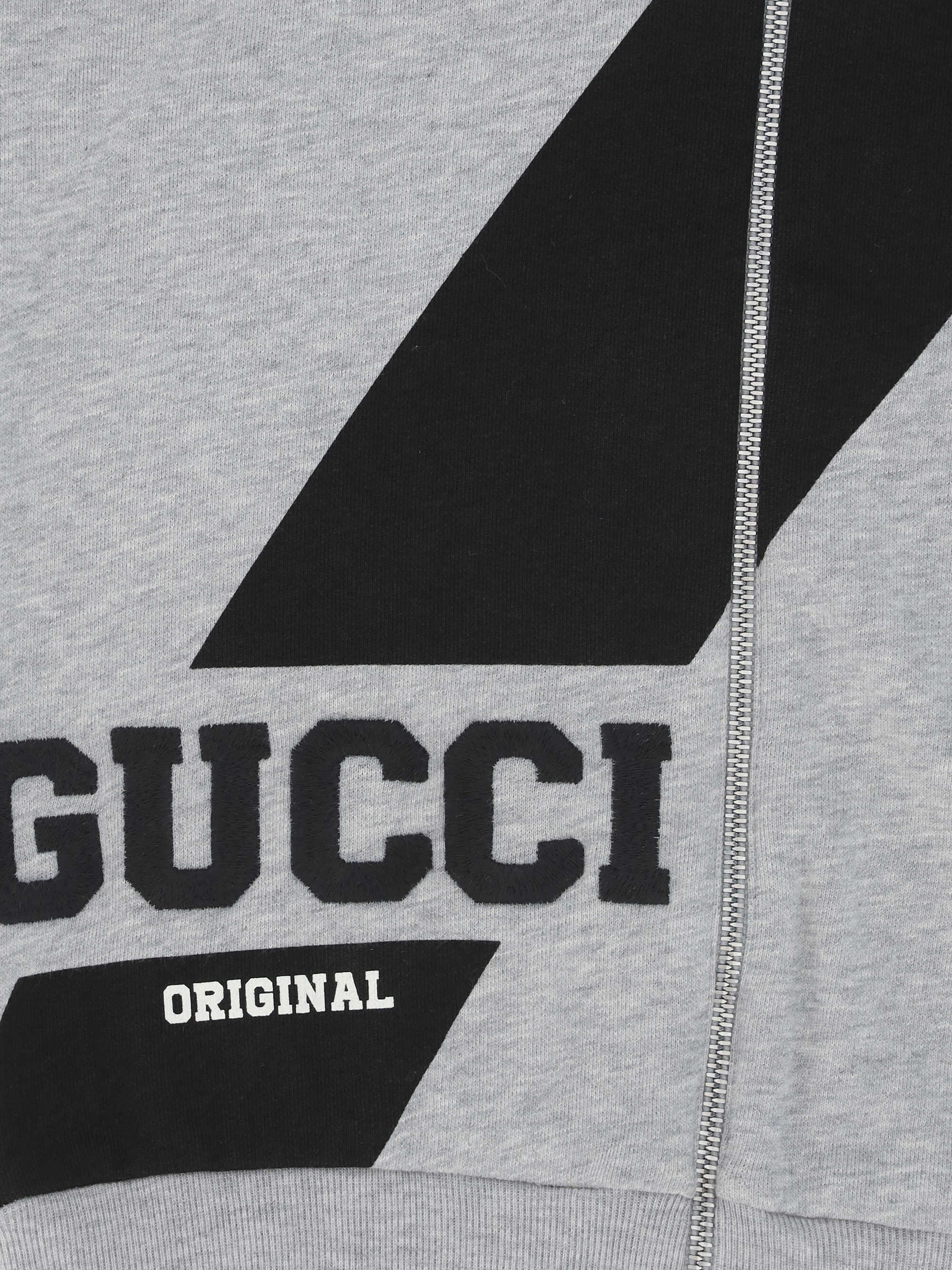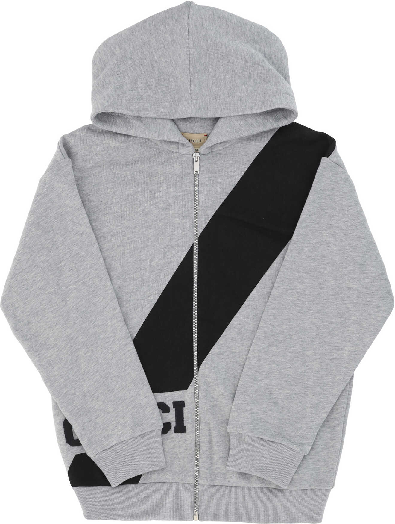 Cotton Sweatshirt for Boy by Gucci features front zipper closure, two side welt pockets, iconic multicolored brand monogram printed on front, ribbed cuffs.