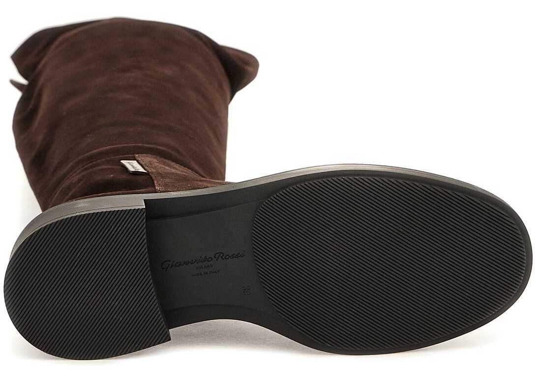 Lexington boots by Gianvito Rossi made of suede leather featuring a round toe, leather interior and rubber sole. They feature side zipper closure and are finished with lettering logo engraved on the back of the heel.