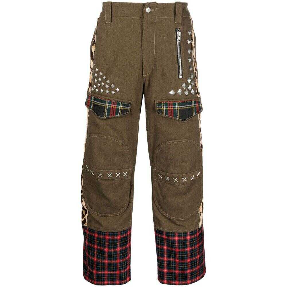 Olive green/multicolour virgin wool mix print silver-tone stud detailing panelled design built-in kneepads front button and zip fastening front zip-fastening pocket two side inset pockets two front flap pockets