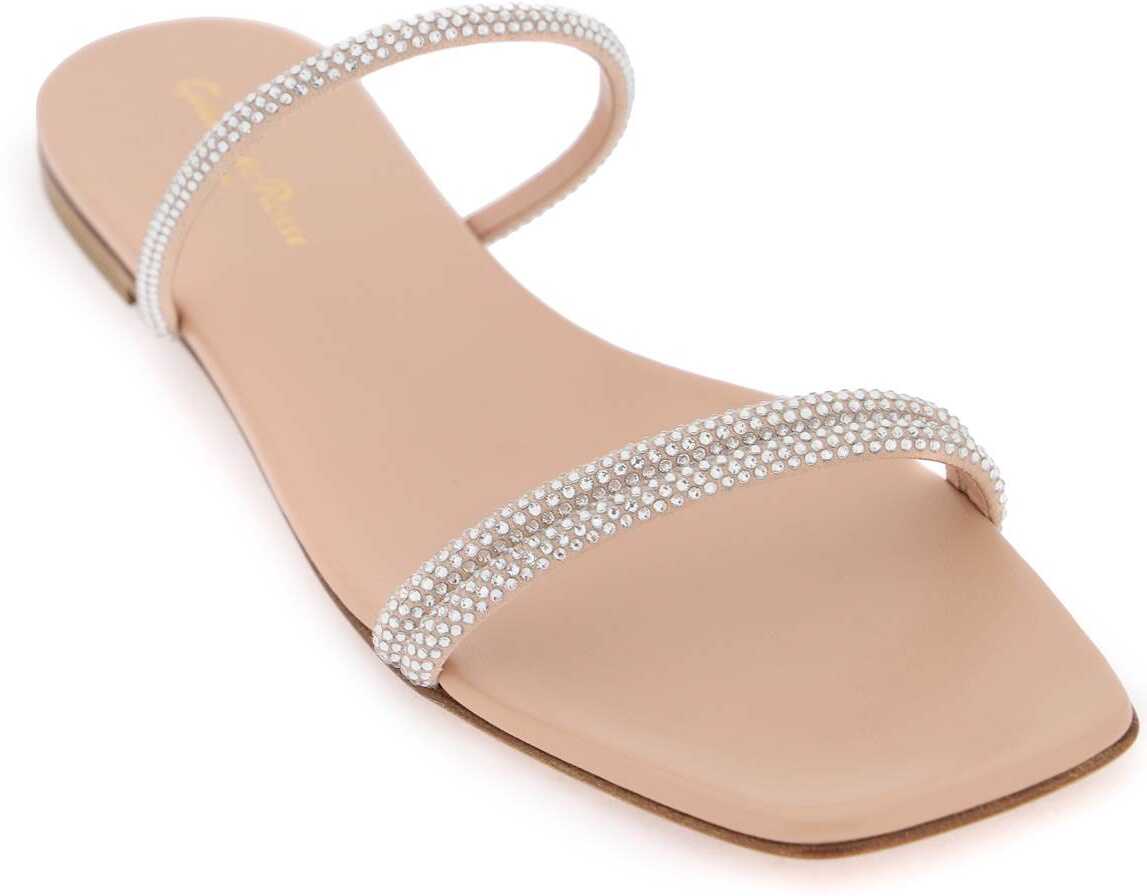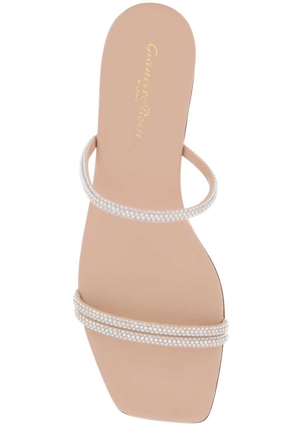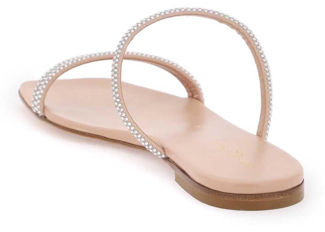 Leather "Cannes" slides by Gianvito Rossi embellished with crystal bands. Leather sole with rubber inset.