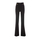 black stretch-design crepe texture gold-tone logo plaque to the front front faux flap pocket detail embossed gold-tone decorative button detailing front exposed-seam detailing full-length flared hem concealed side hook and zip fastening