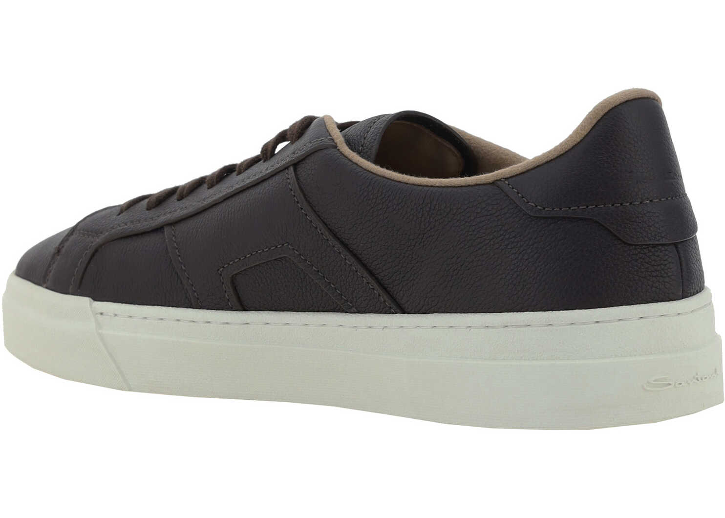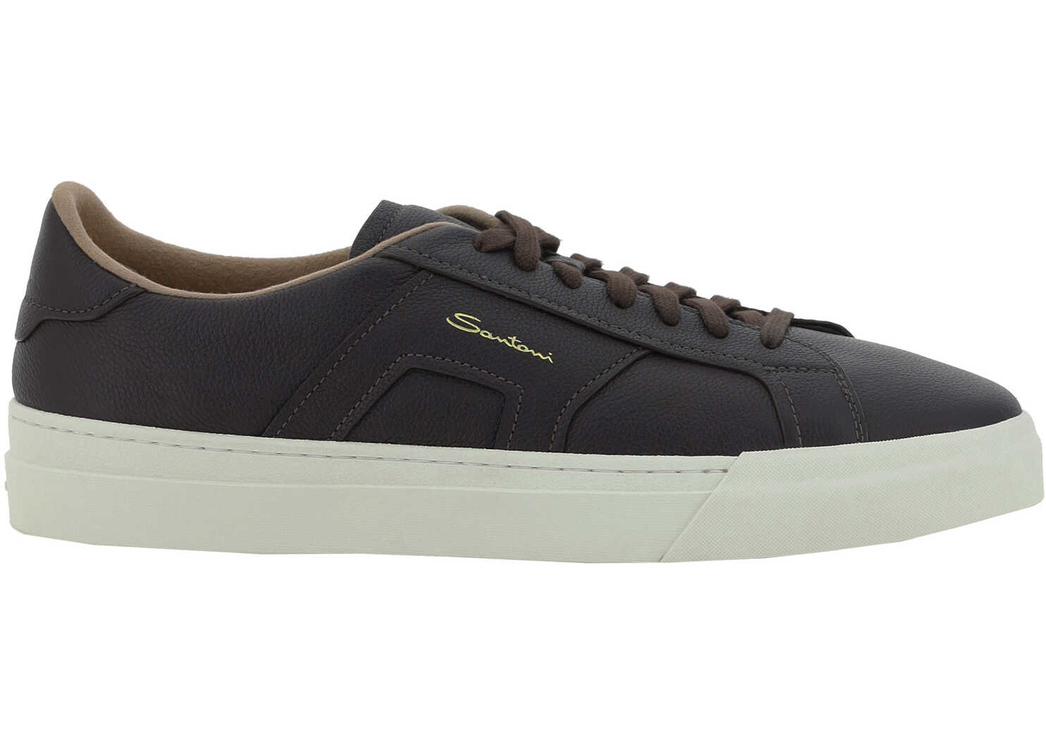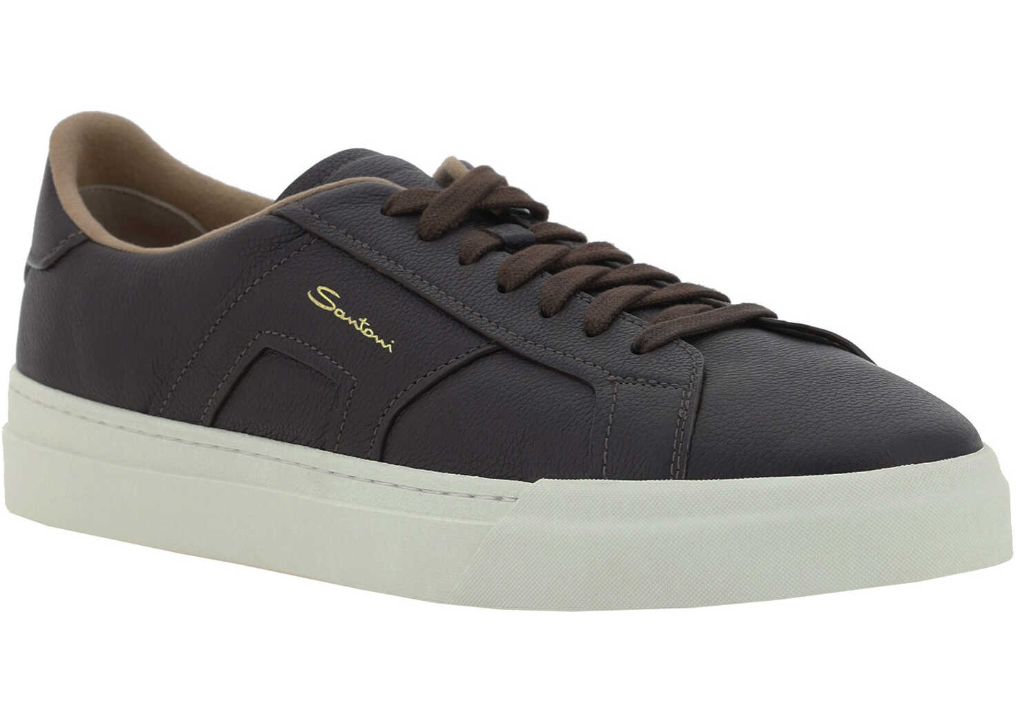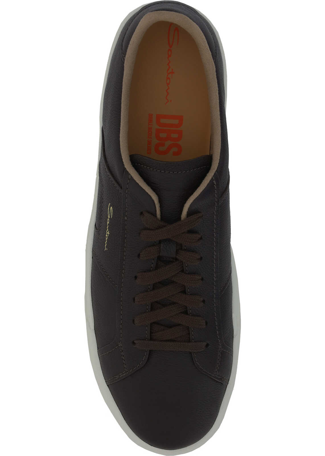 Leather Sneakers by Santoni featuring a lace-up front fastening, a round toe, a contrasting flat sole, a suede leather design, and a brand signature press-stamped on the outer side panel.