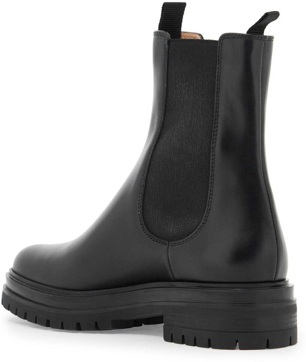 Chester boots by Gianvito Rossi crafted in smooth leather with side elastic inserts and grosgrain pull tab at front and back. Leather interior, rubber lug sole.