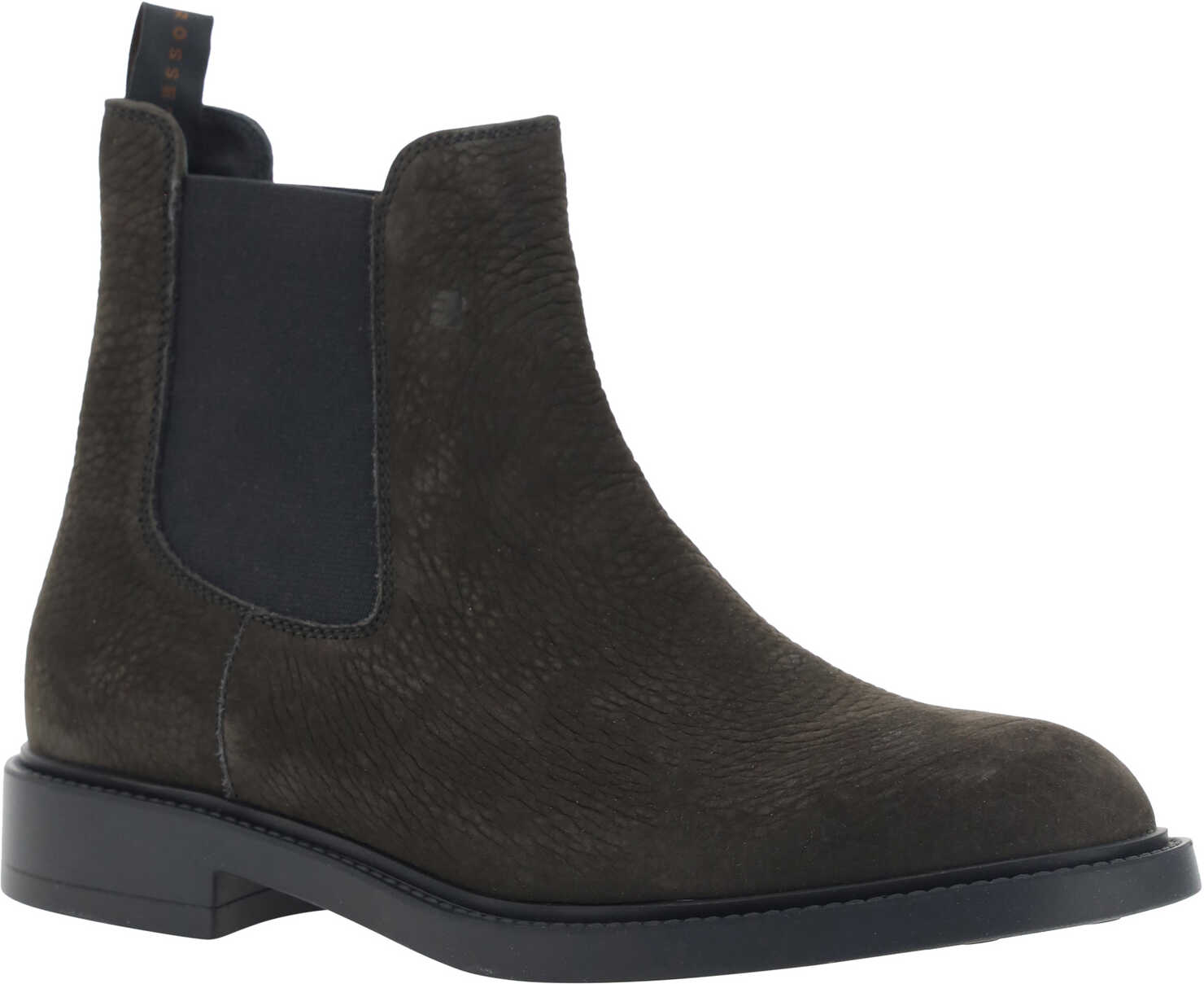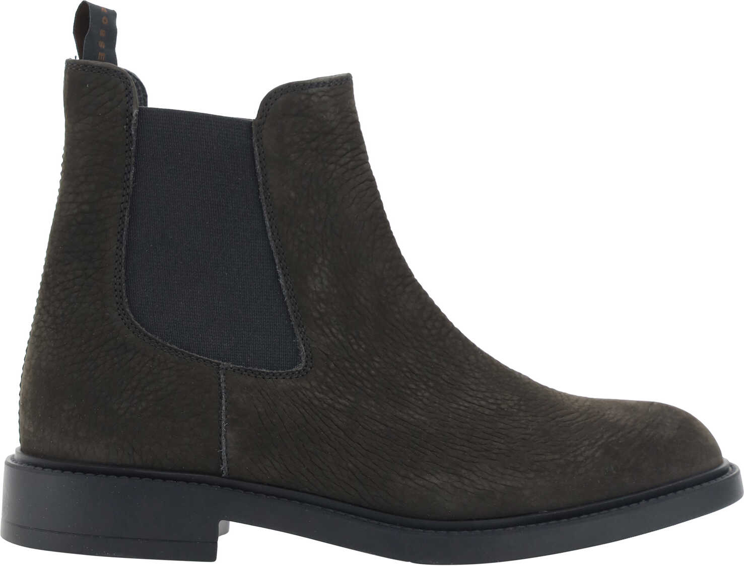 Calfskin Ankle Boots by Fratelli Rossetti featuring grained leather design, almond toe, elasticized bands applied to side panels, leather block heel.