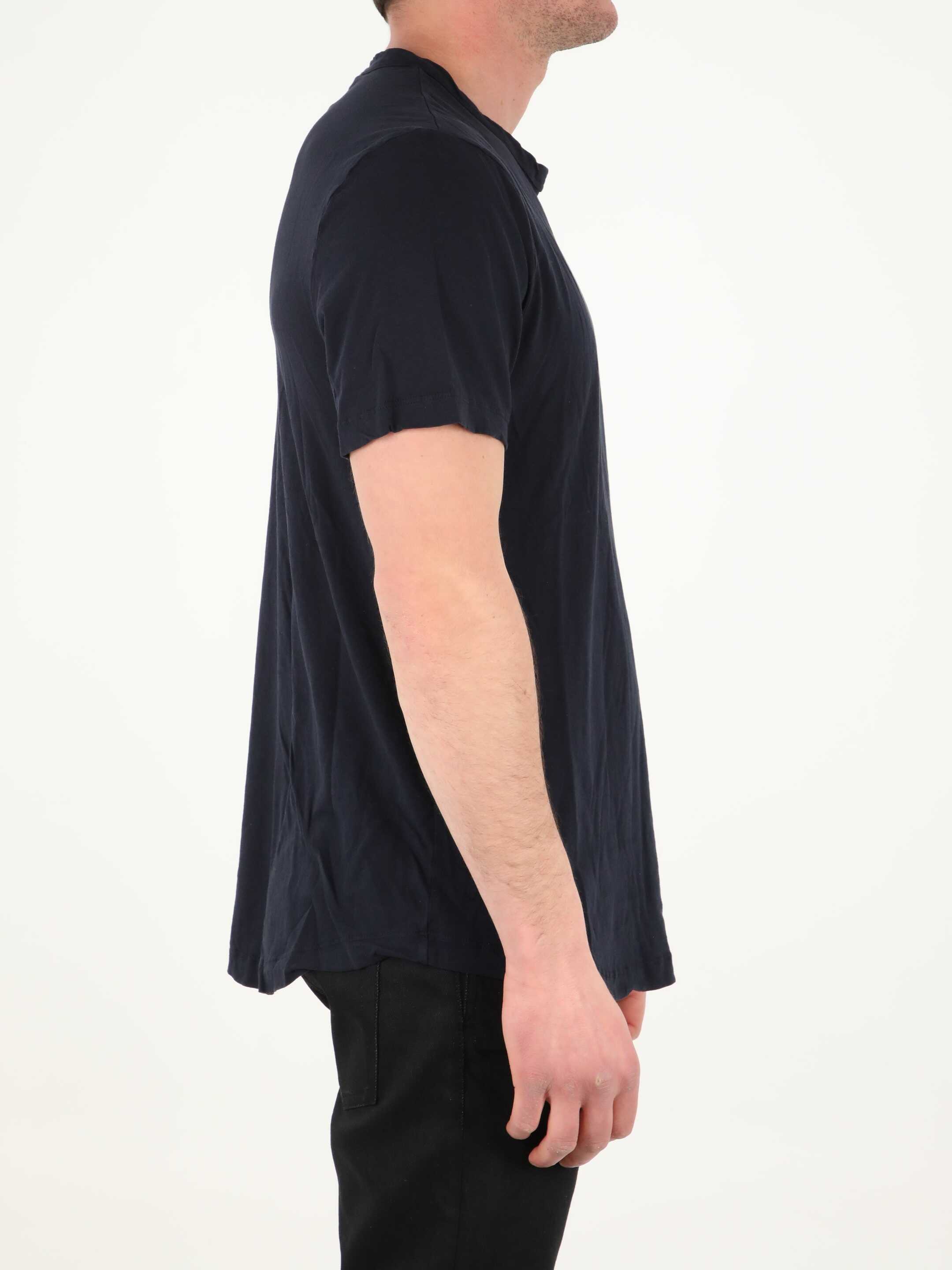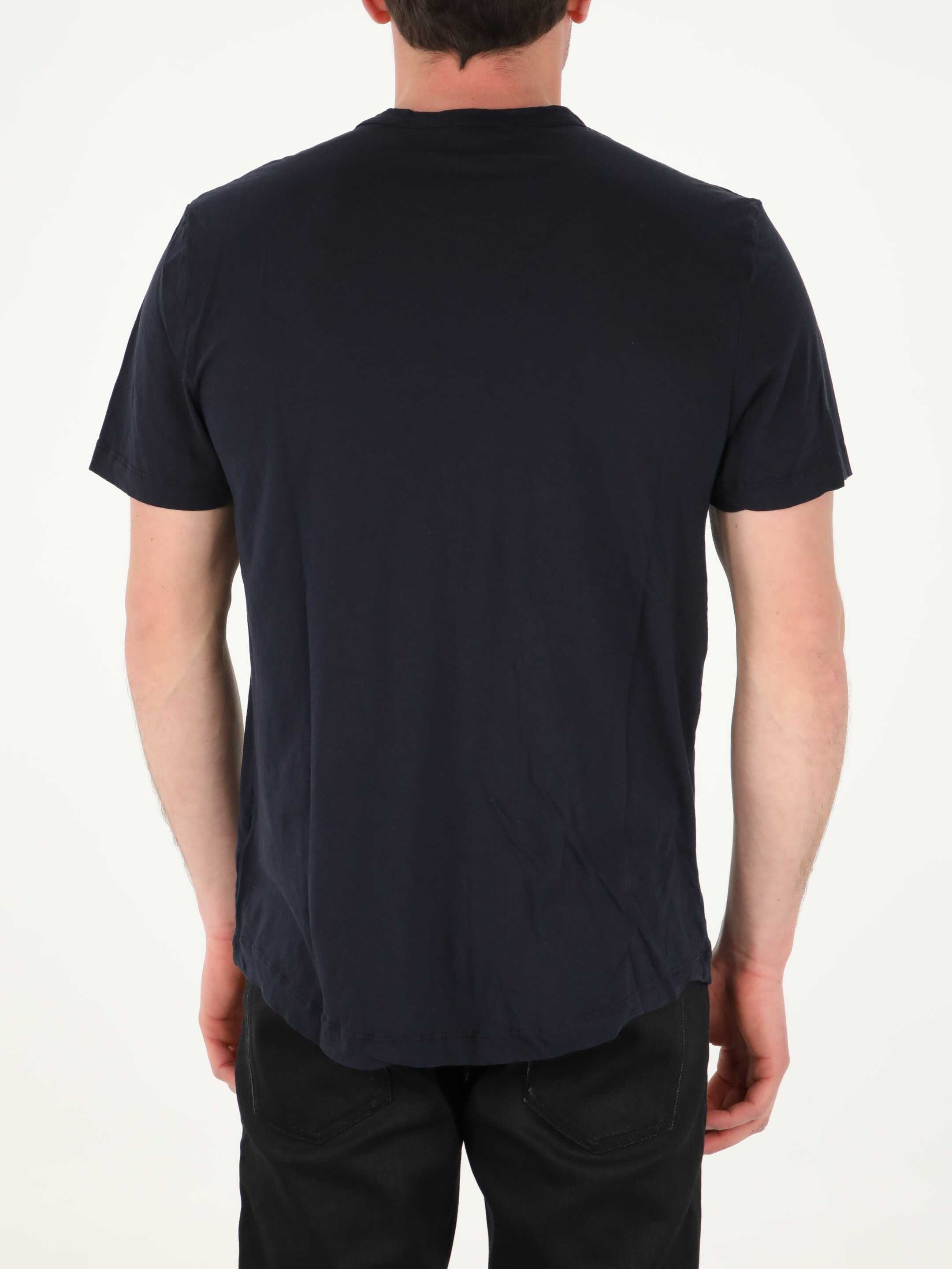 Short-sleeved crewneck t-shirt in blue combed cotton. Ribbed collar. Regular fit.