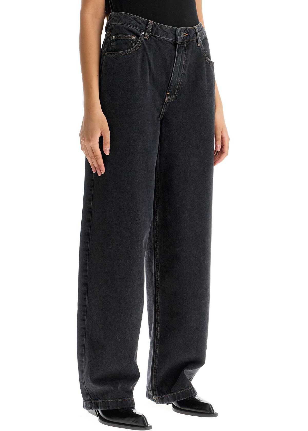 Five-pocket Rotate jeans with a wide and baggy fit, featuring a medium rise. Made from organic cotton denim, they are finished with contrasting stitching, belt loops, and a hidden zip and button closure.