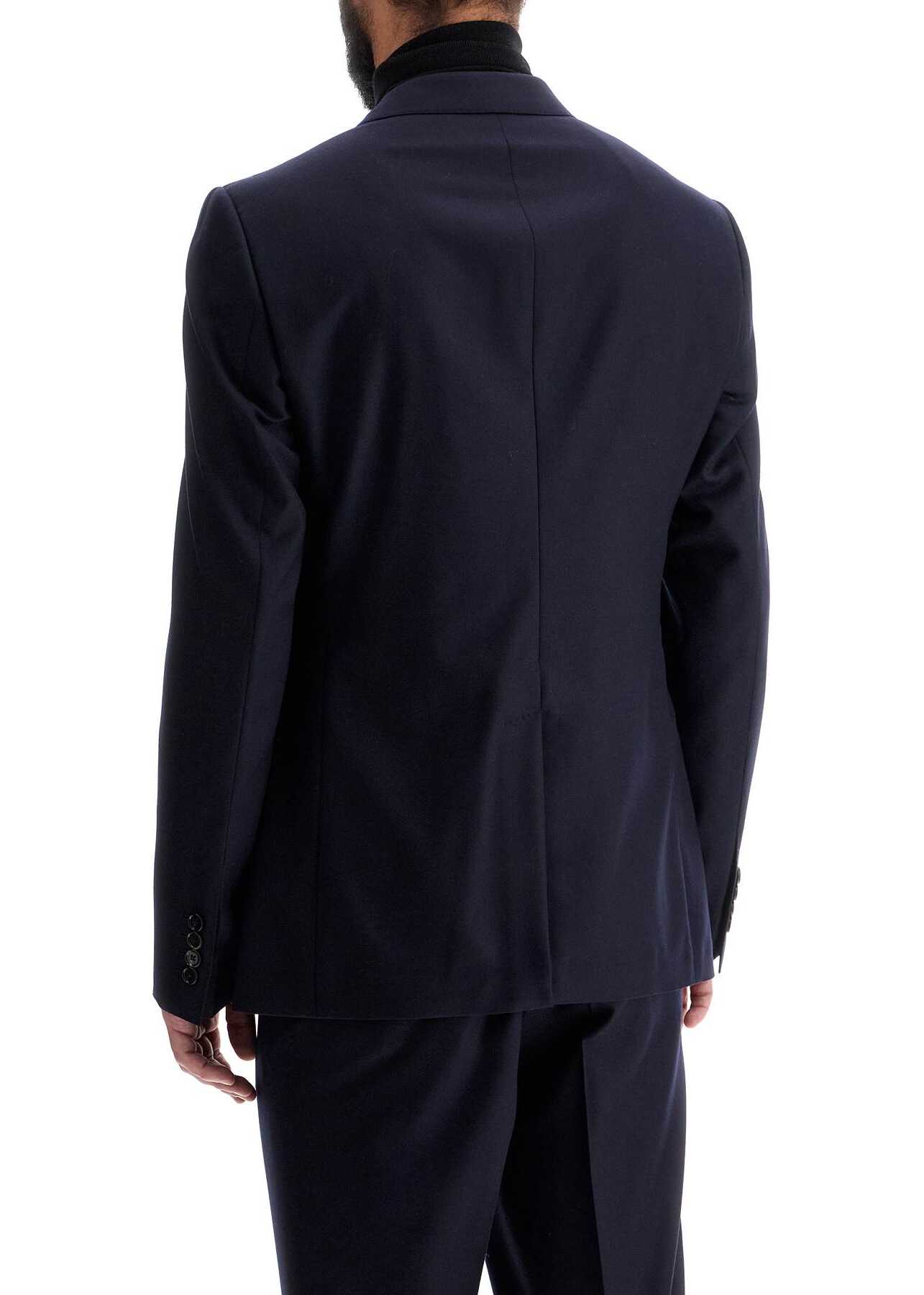 Crafted in fine pure virgin wool flannel, this Dolce & Gabbana tailored jacket features a single-breasted two-button design with peak lapels and a central back vent. It is enhanced by two flap pockets and a chest pocket. The construction is deconstructed with a fully unlined interior complete with two pockets. Regular fit.