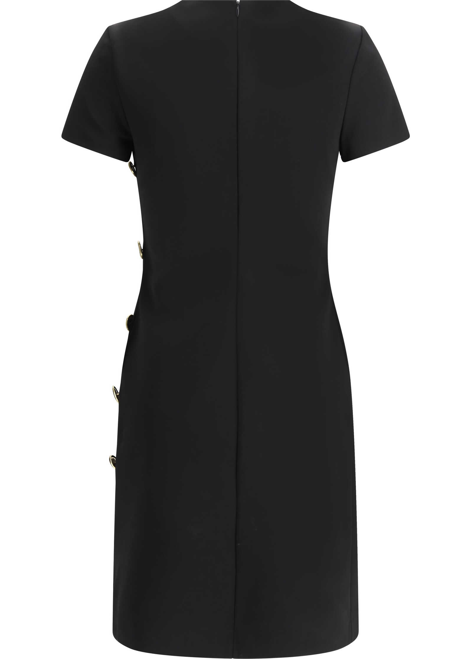 Dress by Givenchy, short-sleeved design, zipper and hook-and-eye closure at back, V-shaped front drain, side slit, button detail with iconic brand logo applique on side panel, monochrome pattern, regular fit.