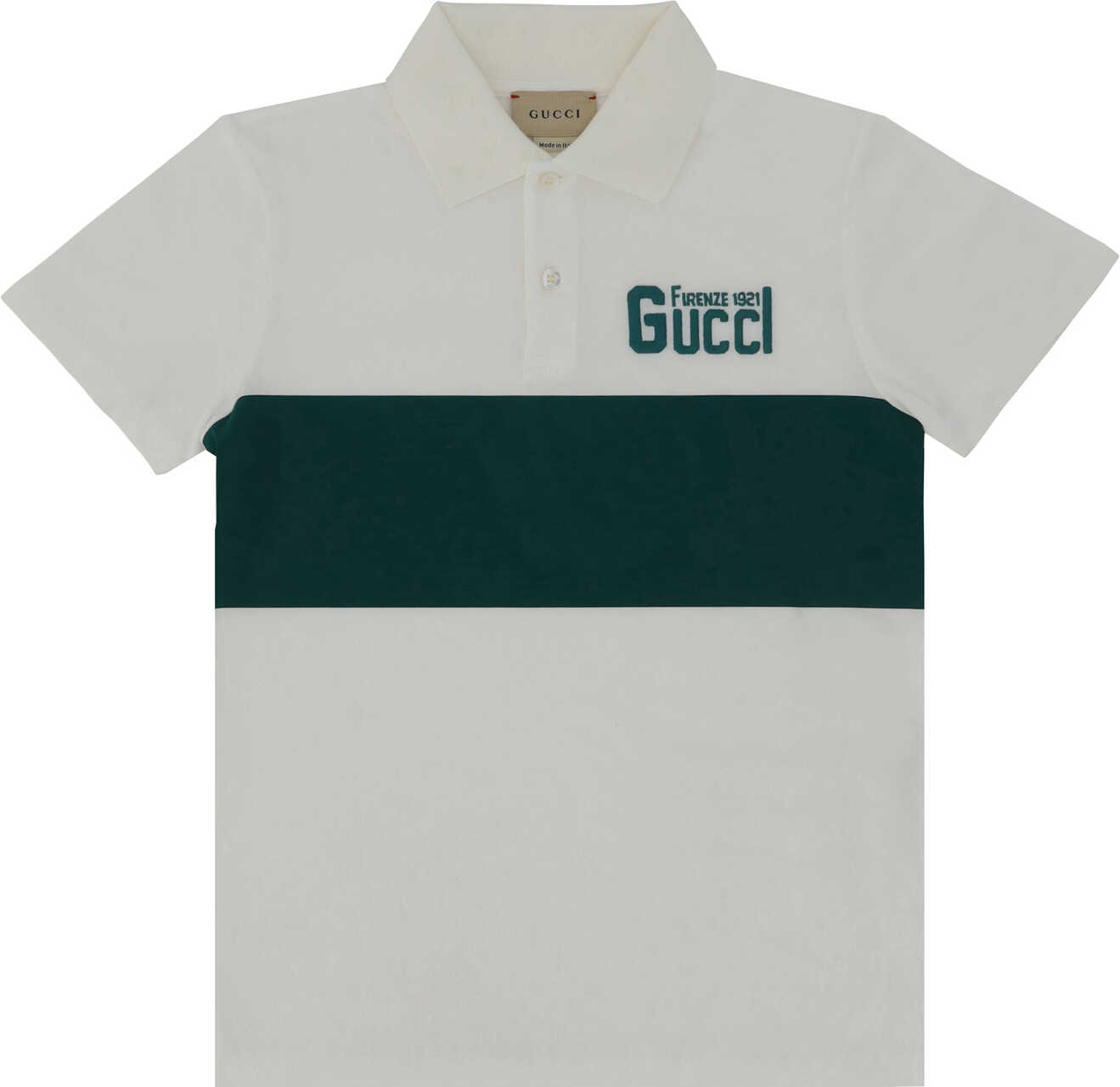 Cotton Polo Shirt for Boy by Gucci, classic ribbed collar, tone-on-tone front buttons, iconic GG logo embroidered on front.