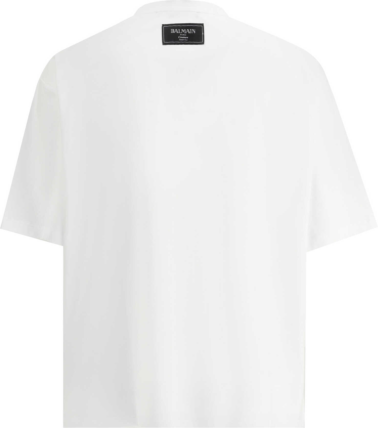 Cotton Kiss T-Shirt by Balmain features ribbed crew neck, maxi print with contrasting iconic brand monogram on front, monochrome pattern, regular fit.
