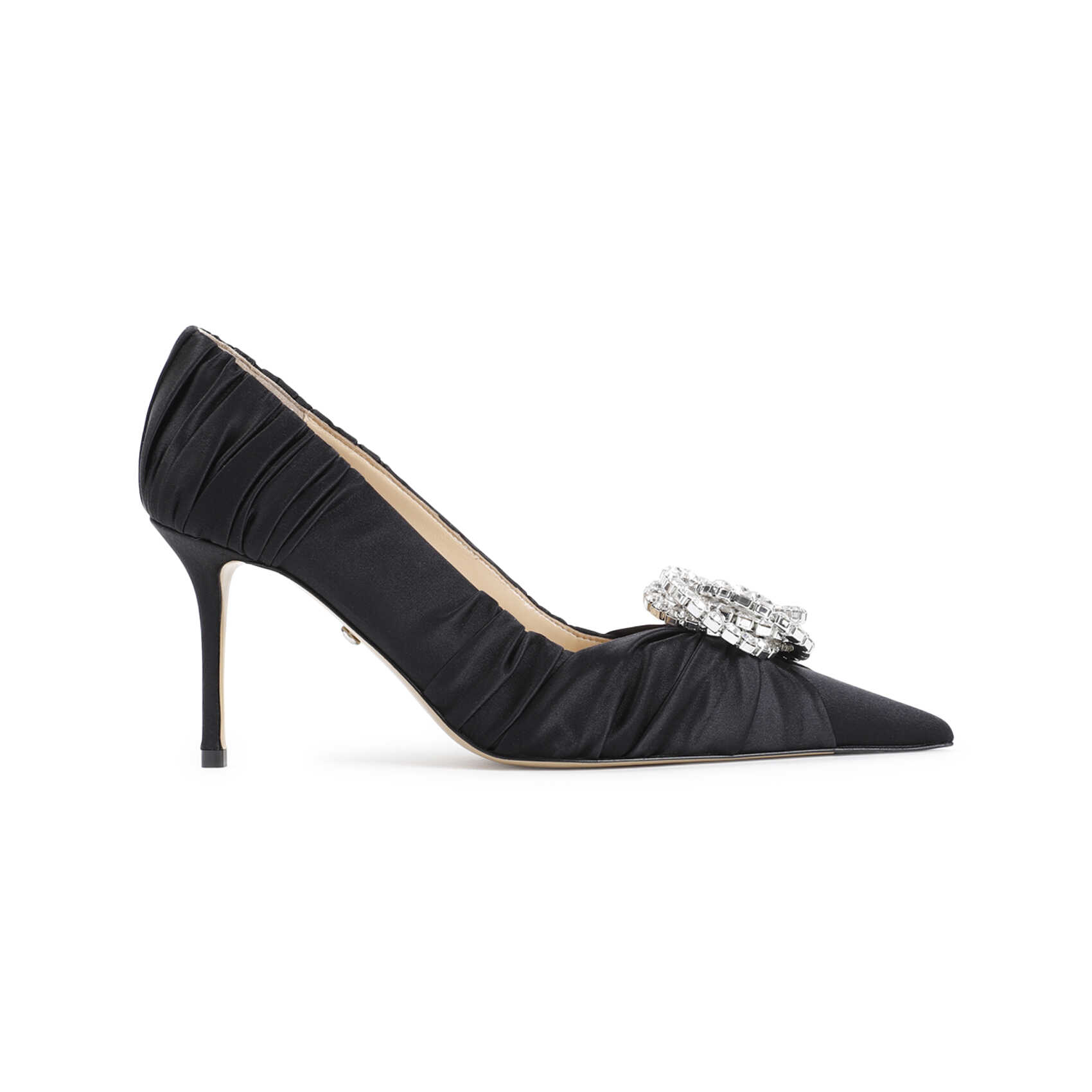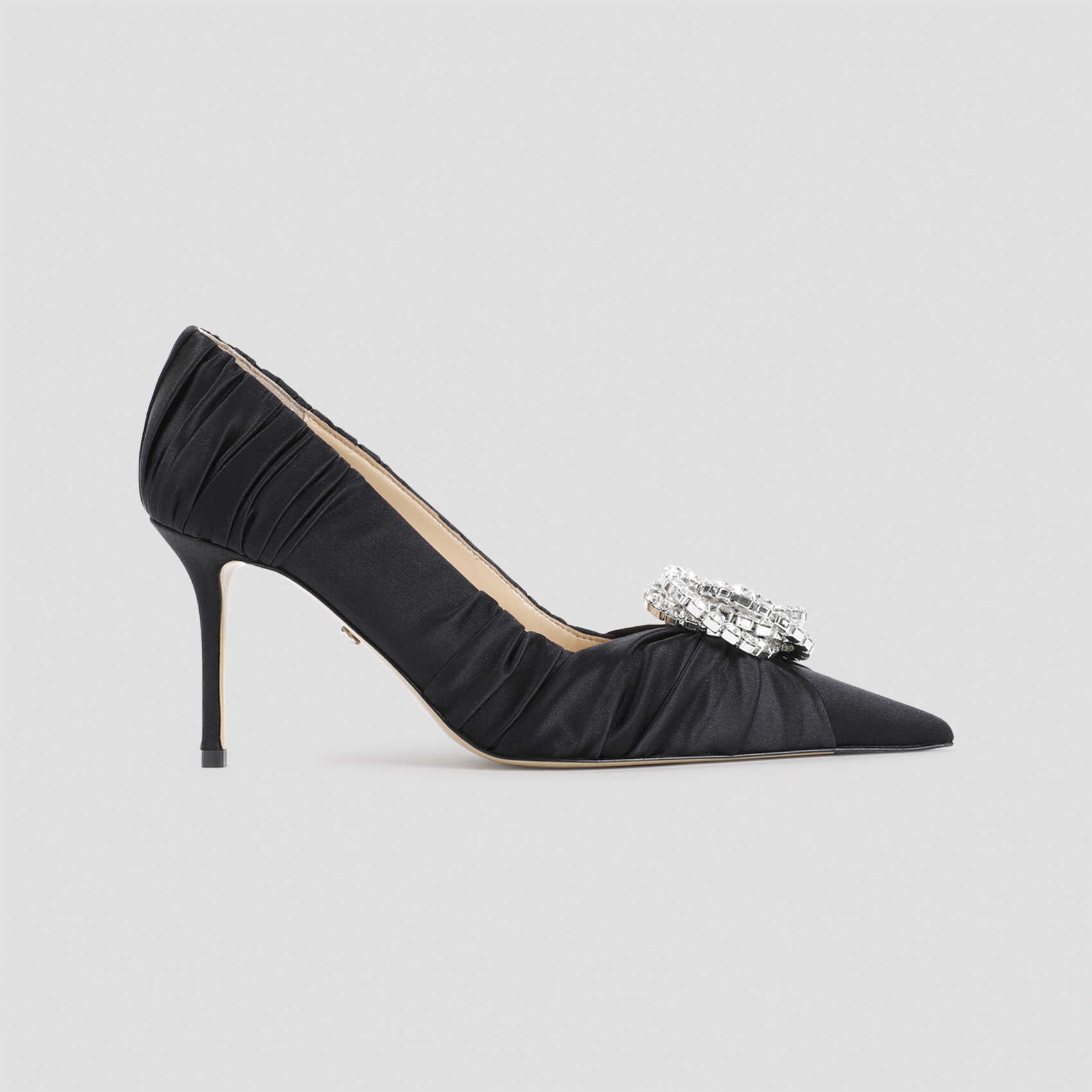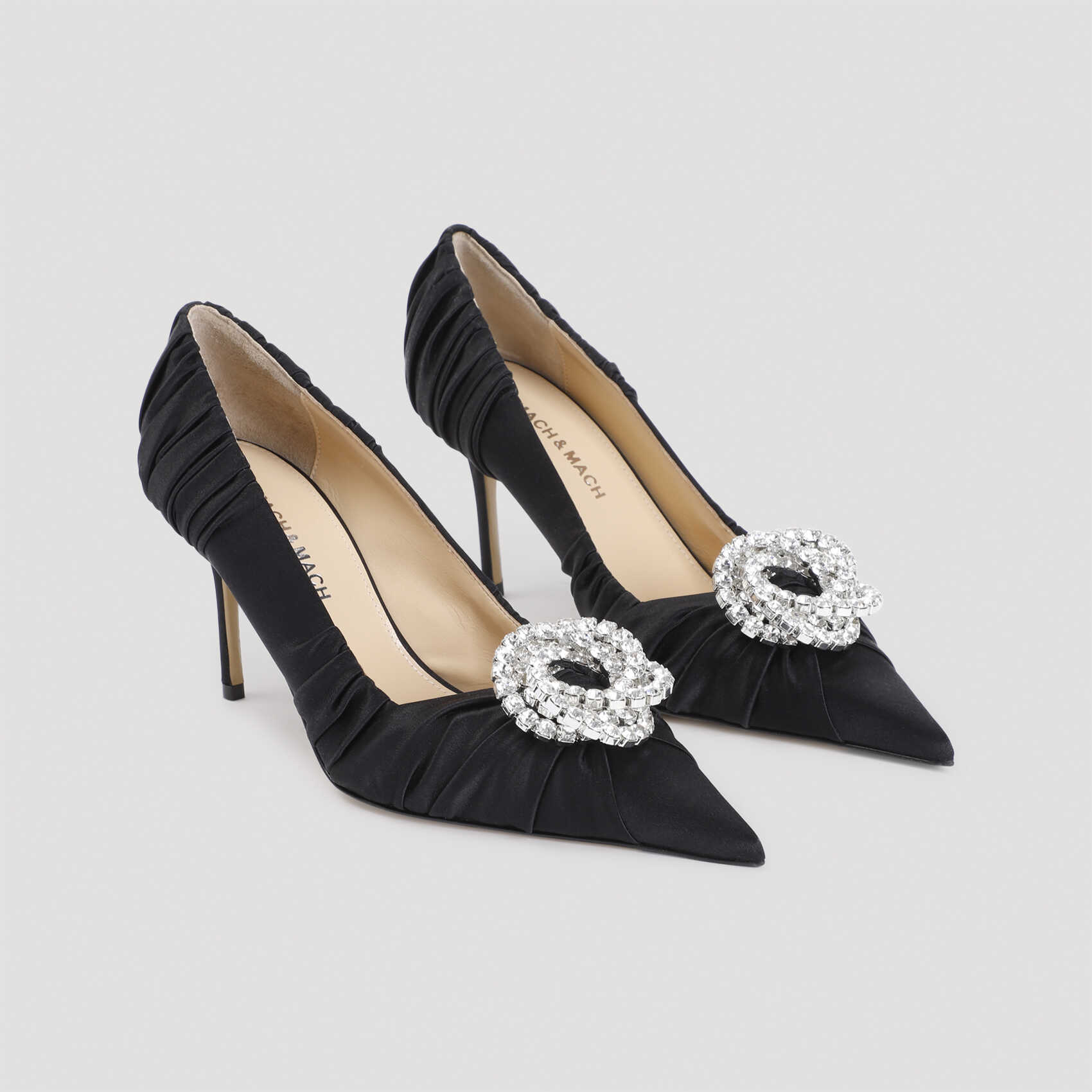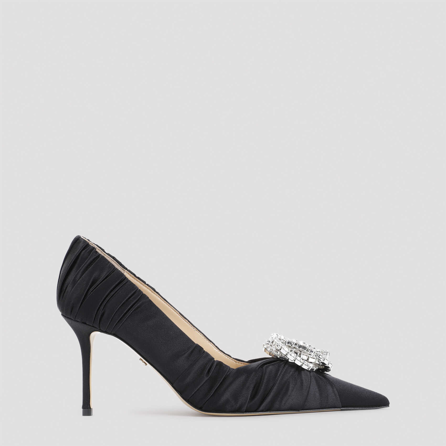 Step out in style with these elegant Black Satin Sandals from MACH & MACH. Featuring a comfortable 8.5cm heel height, these sandals are perfect for any occasion. Made with high-quality satin and leather materials, you'll feel luxurious and chic with every step. Elevate your look with these must-have sandals from MACH & MACH.