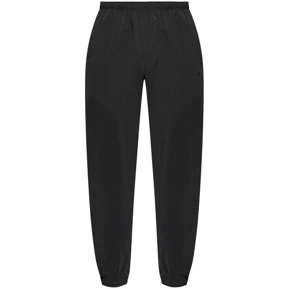 Black elasticated waistband two side slit pockets elasticated ankles tapered leg