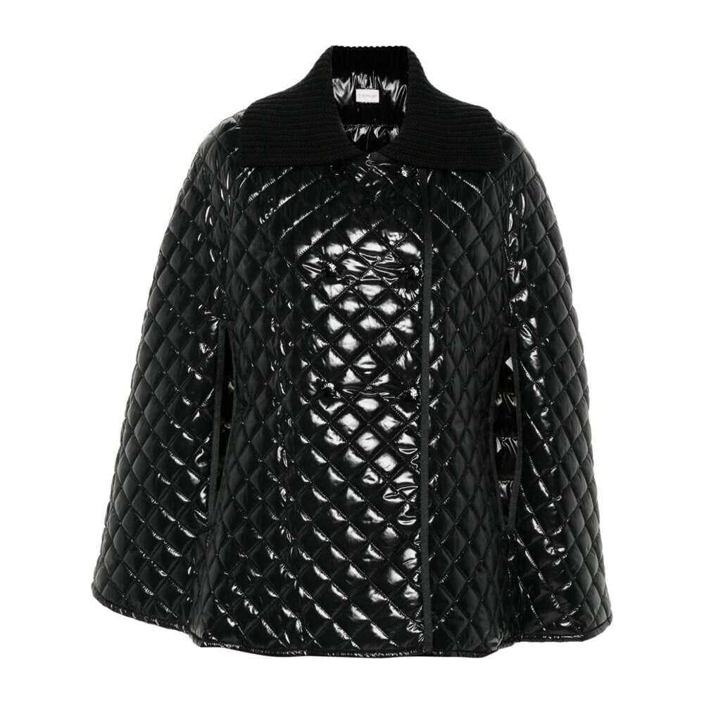 Black glossy finish goose down padded design diamond quilting spread ribbed collar front press-stud fastening sleeveless straight hem full lining