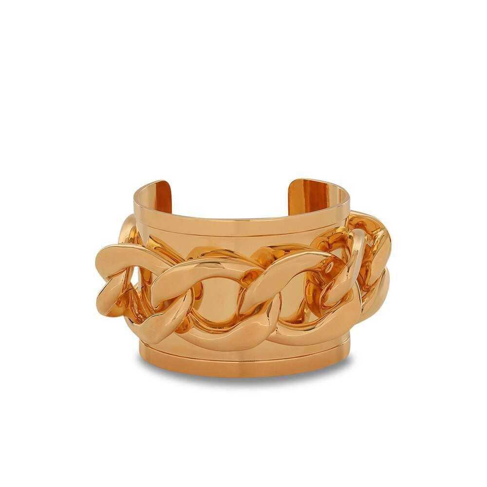 Gold tone high-shine finish cable-link chain engraved logo slip-on style