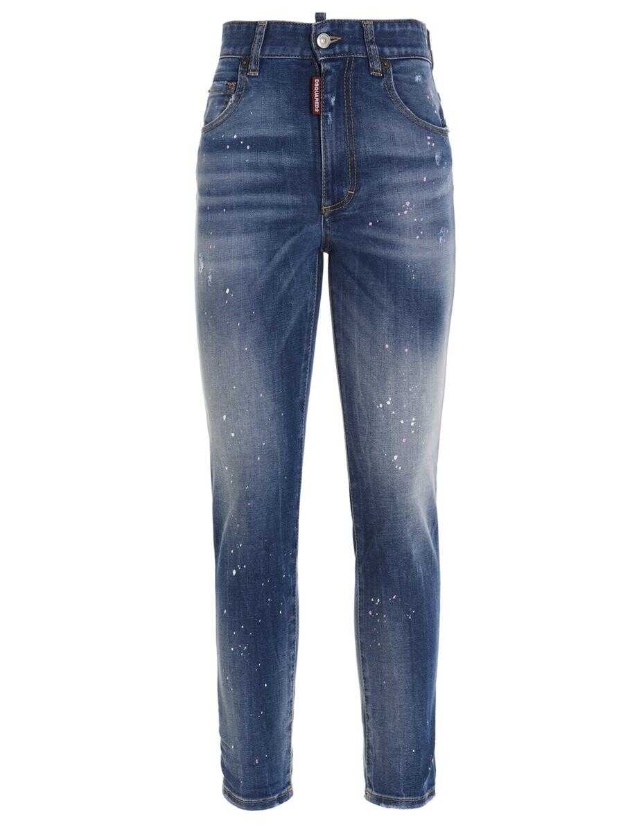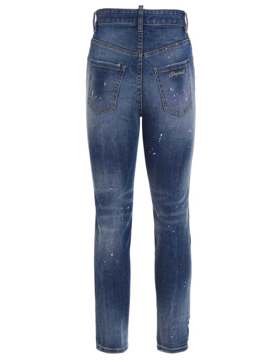 'Twiggy' five-pocket denim jeans with zip and button closure, high waist, washed effect, destroyed and all-over paint details. High waist, cropped fit