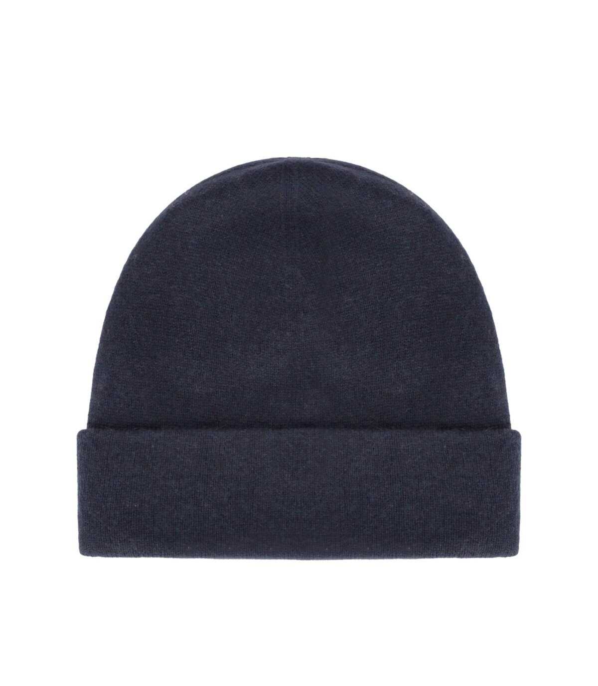 Max Mara Weekend Caimanone beanie, made of cashmere yarn, in blue. Characterized by a ribbed texture, it features a small embroidered logo on the turned-up hem.