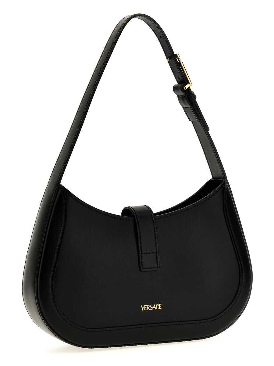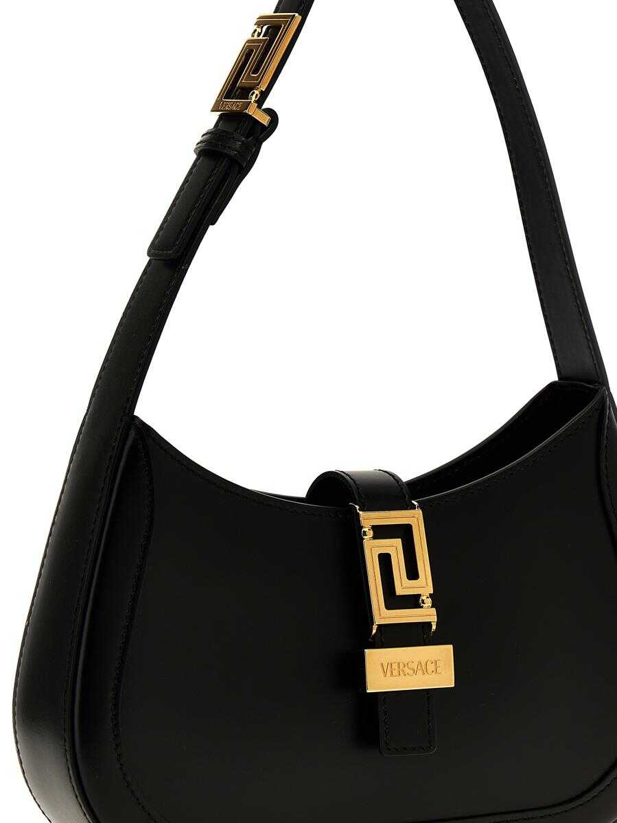 Small 'Greca Goddess' leather shoulder bag with magnetic closure, iconic metal detail, adjustable handle