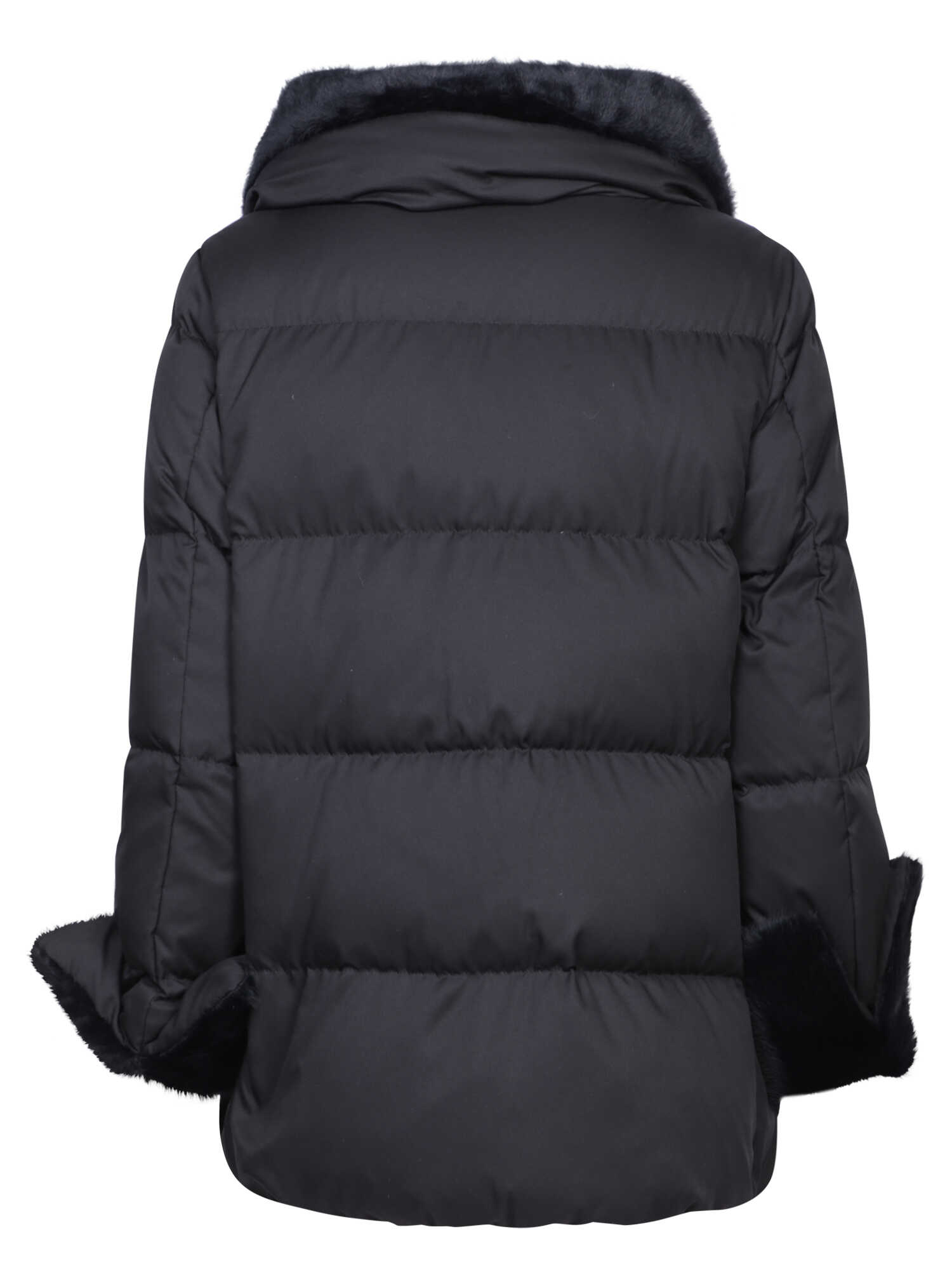 Stay warm and stylish in this elegant black down jacket by HERNO. Featuring a luxurious eco-fur hood and padded cuffs, this jacket is perfect for urban winter. The comfortable silhouette provides warmth without sacrificing style. Made from 100% Polyester, this jacket is a must-have for any fashion-forward woman. Upgrade your winter wardrobe with HERNO Black Down Jackets.