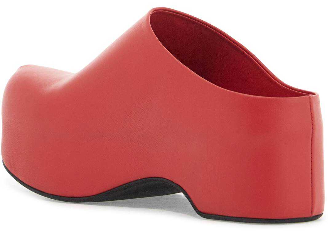 Marni's chunky clog sabot is made of soft nappa leather with a lightweight wooden platform fully covered. The logo detail is imprinted on the edge, while the insole and lining are both made of leather. The sole features a grooved rubber design for added traction.