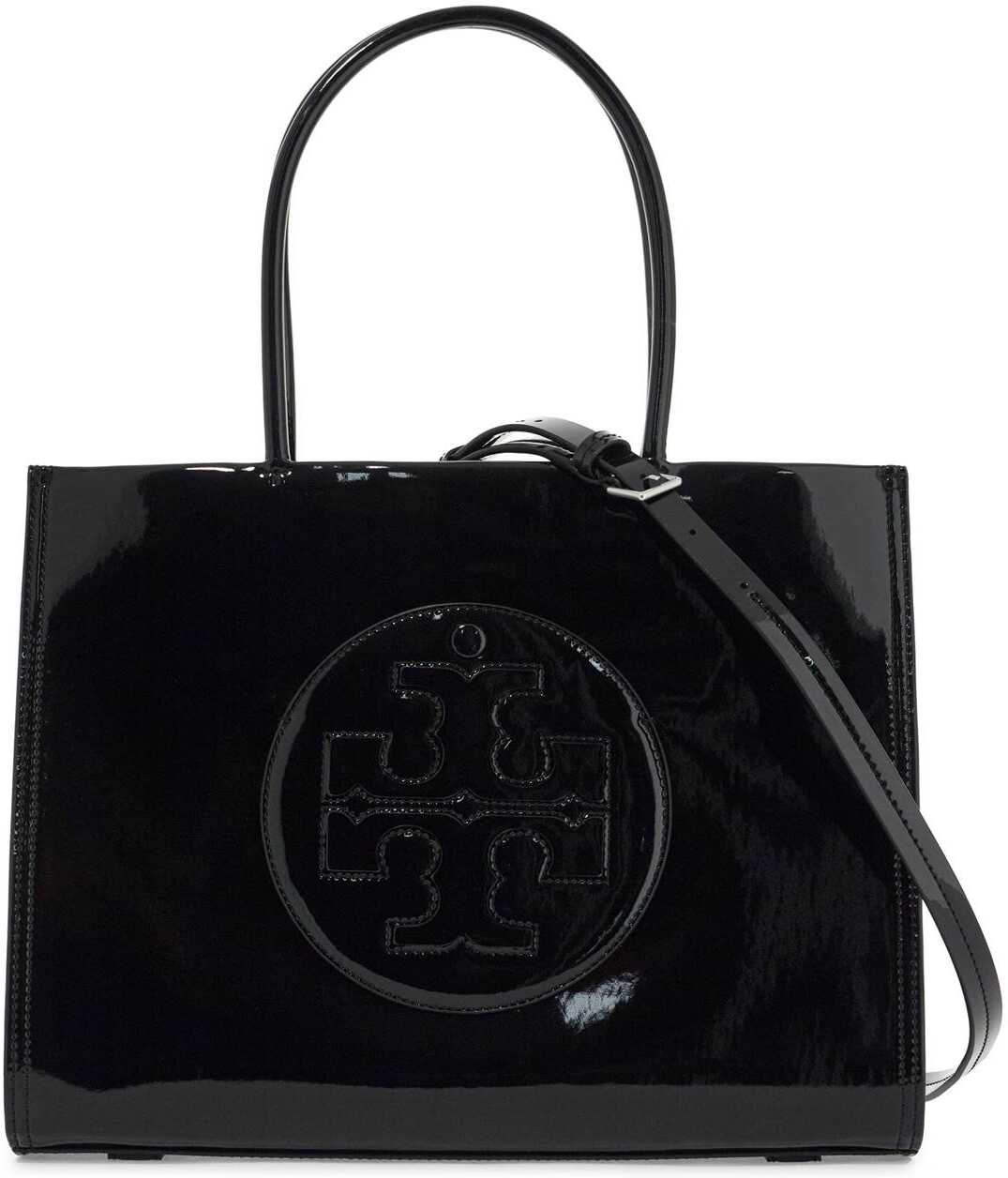The 'Ella' bio tote bag by Tory Burch is made of special BioFabbrica Bio-Tex&trade eco-leather, composed of 64% USDA certified content. It features a front pocket with snap button and the iconic Double T logo, double handles, magnetic closure, and fabric interior with one open pocket and one zippered pocket. It also comes with an adjustable and removable shoulder strap for added convenience.