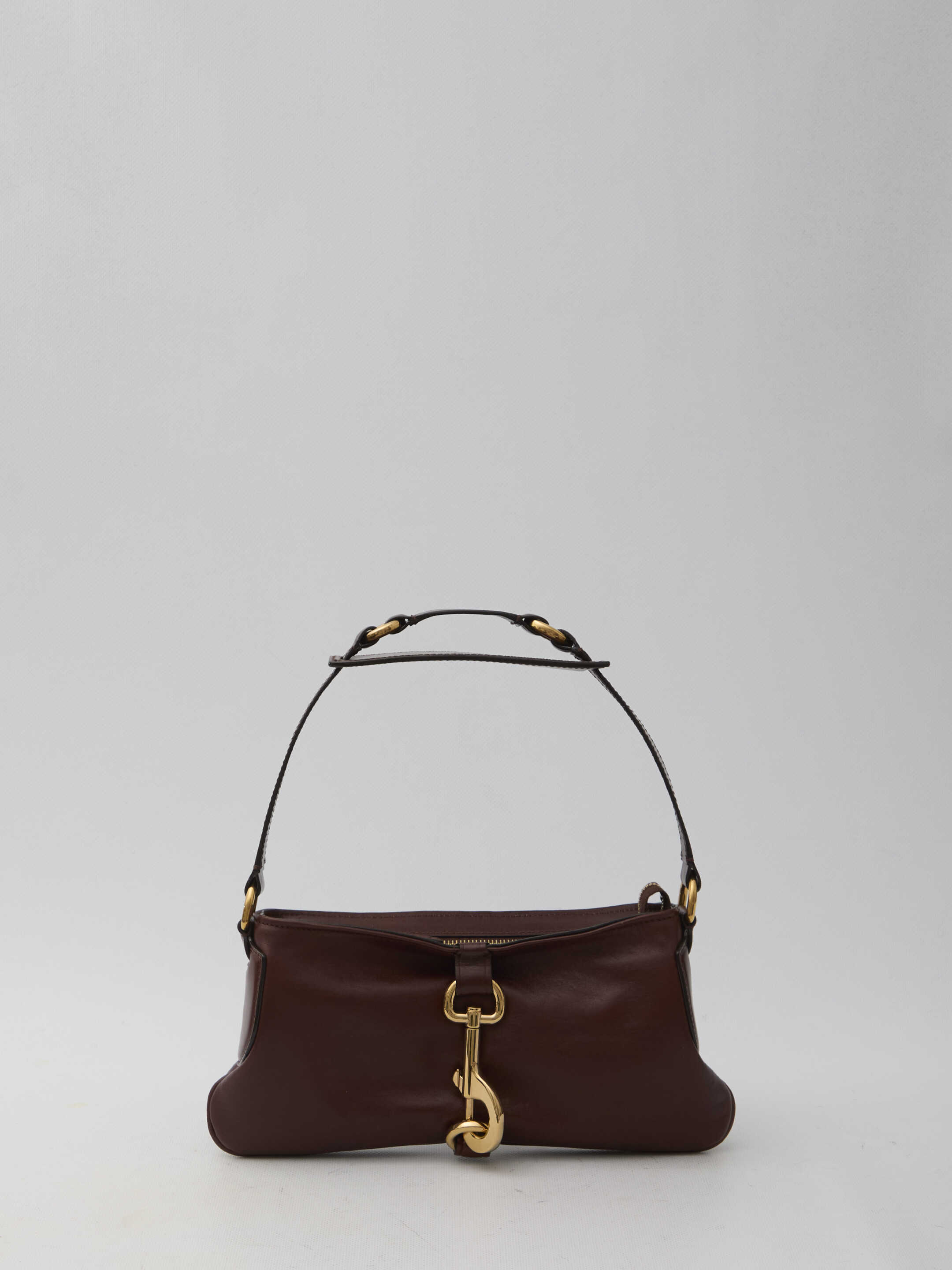 Kerala 25 shoulder bag in soft dark ebony leather with gold-tone hardware. It features shoulder strap, oversized hook, zip closure, one main interior compartment and one interior slip pocket. Dust bag included. Any leather imperfections are not to be considered manufacturing defects, but a peculiarity of the material.