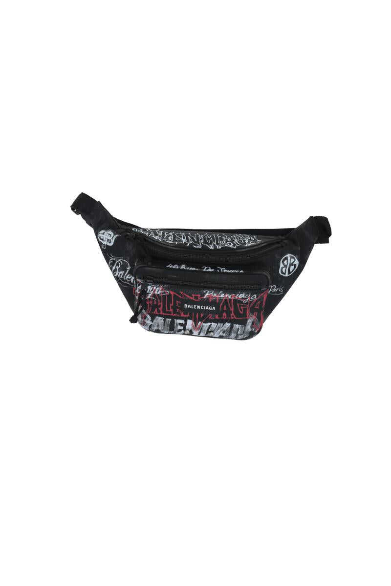 Balenciaga's belt bag crafted in black recycled nylon with DIY metal allover logo print. It features black metal hardware, zip closure and adjustable belt. Black fabric-lined interior. The design is completed by front zip pocket embellished by Balenciaga logo label and metal piercing detail.