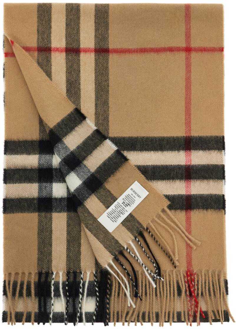 Burberry scarf in soft cashmere embellished with Giant Check motif over the entire surface. Fringed hems.
