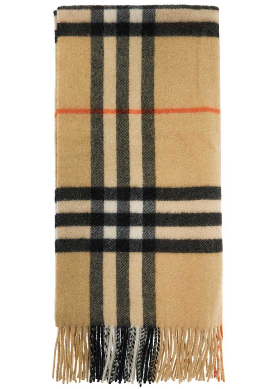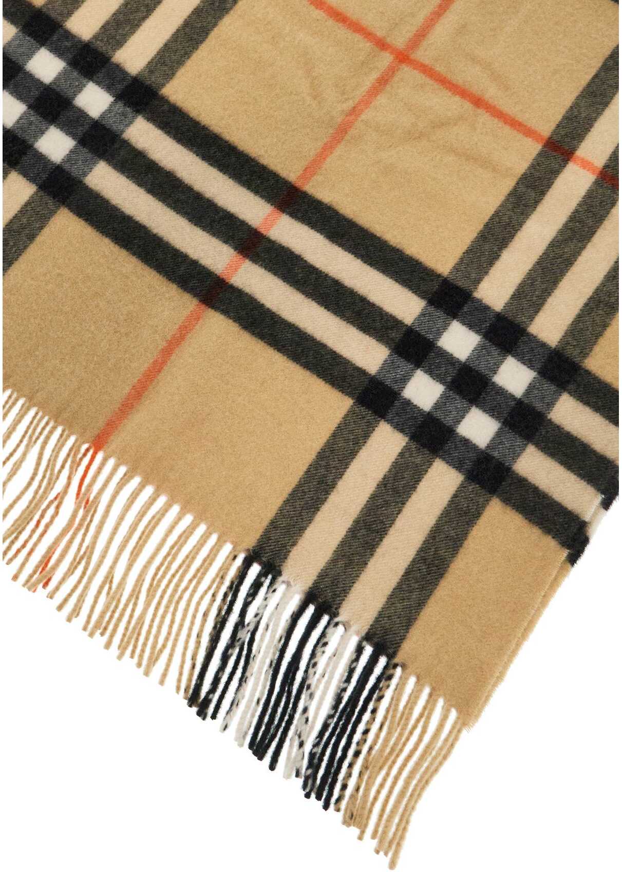 This pure cashmere scarf features the iconic Burberry Check pattern, finished with fringed edges and a logo label at the bottom. Luxuriously soft and stylish, it is the perfect accessory for any outfit. The timeless design adds a touch of elegance to your look, while the high-quality material ensures warmth and comfort. Whether worn as a statement piece or for everyday use, this scarf is a must-have in any wardrobe. Elevate your style with this classic Burberry accessory that exudes sophistication